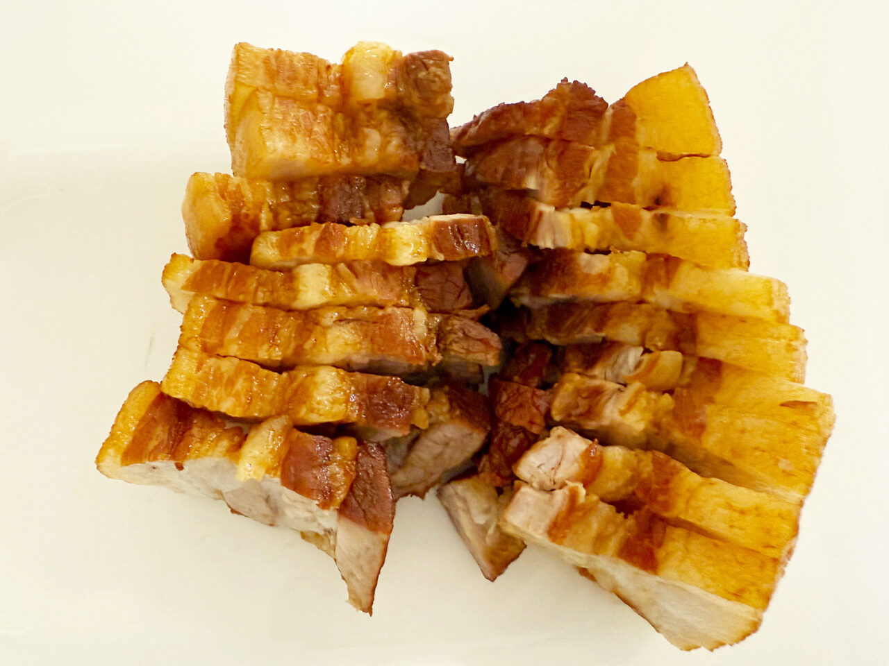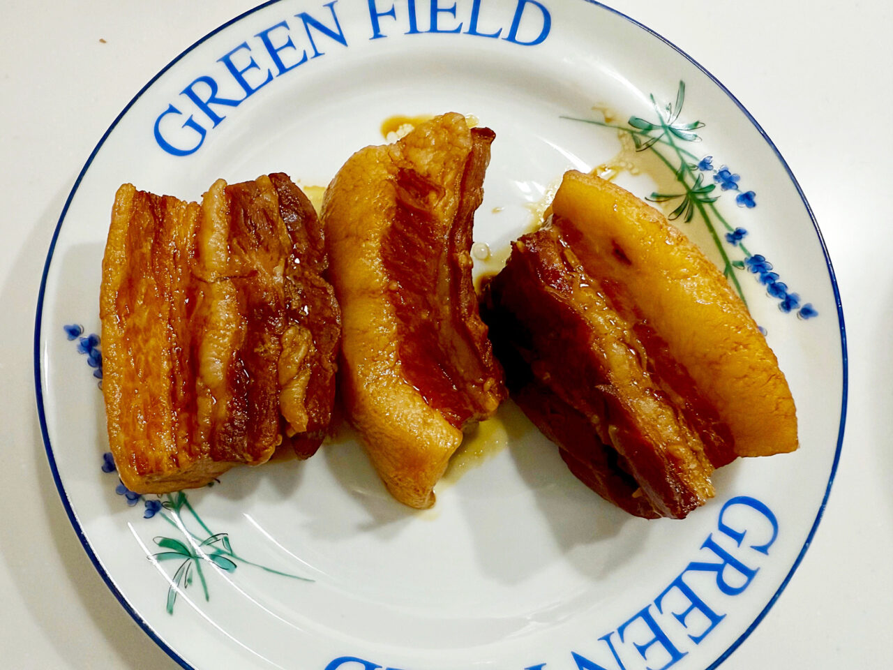 今回は前回の失敗から学んで、豚バラを煮る時間や調味料の配分などを厳密に管理して万全を期したお陰で、美味しく仕上がりました。