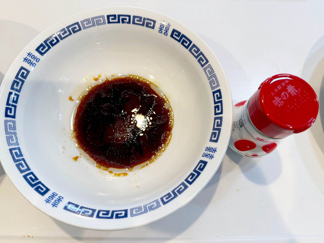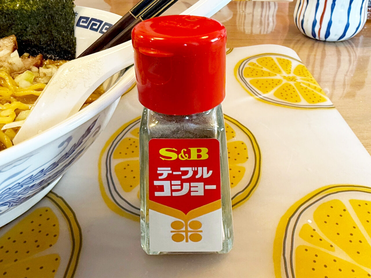 「竹岡式ラーメン」は醤油感が強いラーメンですが、ブラックペッパーより「S&Bテーブルコショー」が良く合います。