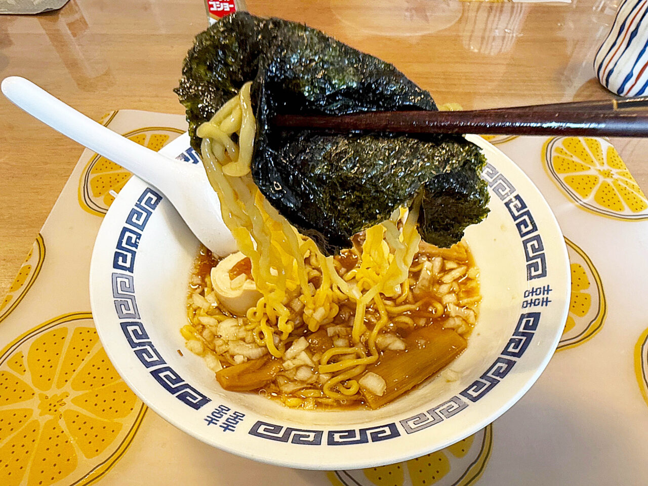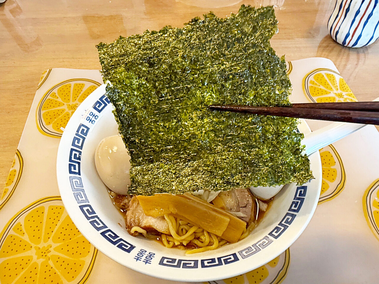 醤油と生姜の効いたスープと海苔の香ばしい風味が美味しいです。