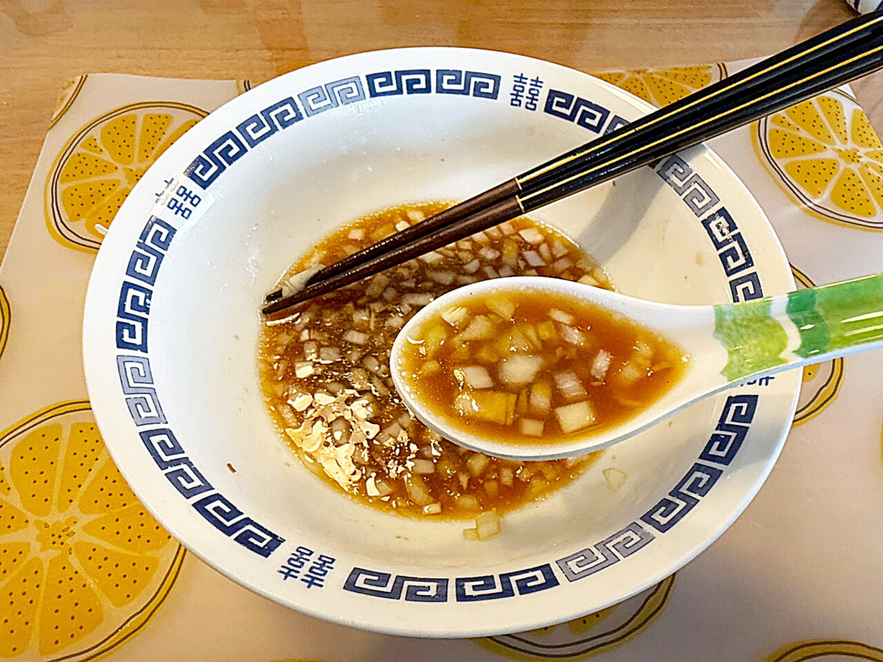 醤油と生姜の効いたスープは豚バラの旨みと味の素のグルタミン酸の旨みがとても良いです。