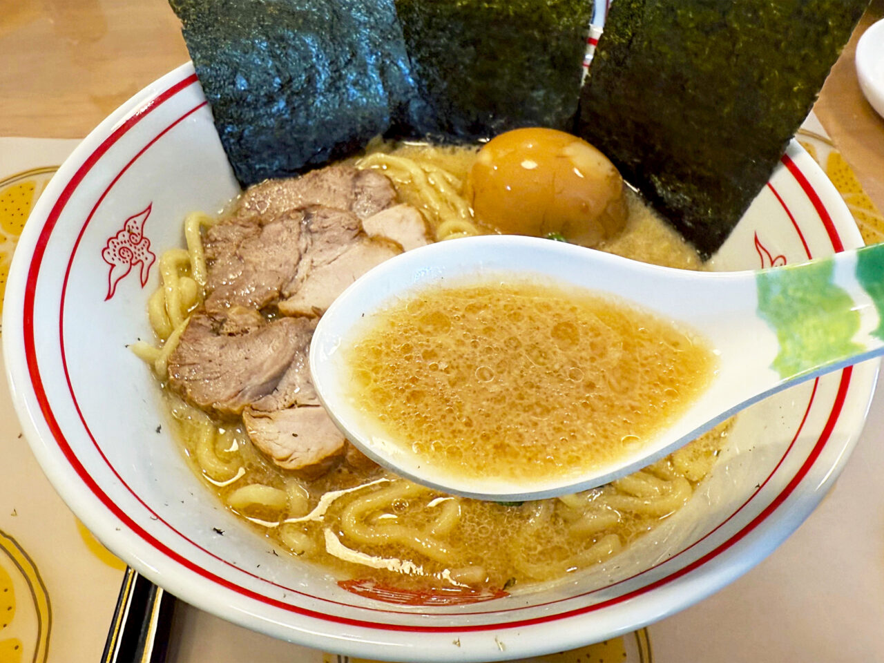麺と具を食べ終えて、スープを味わいます。