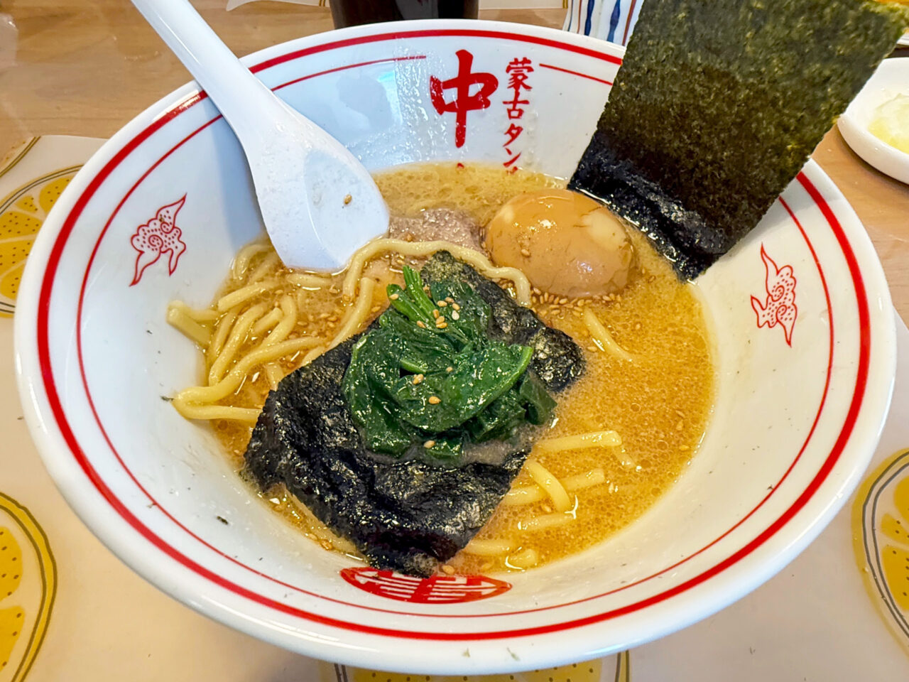 ほうれん草の味と豚骨醤油スープがメチャメチャ合います。