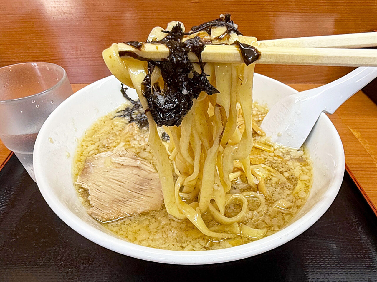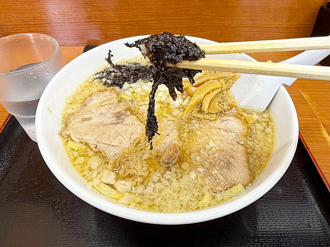 バラ海苔に背脂が絡んで良い感じにまろやかになります。