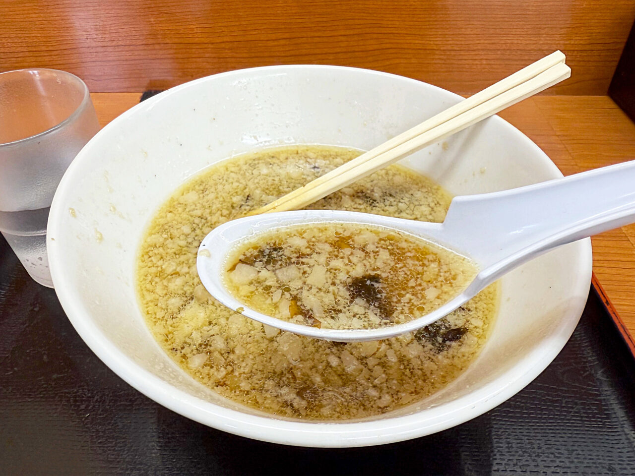 その香ばしい風味に負けない煮干しの風味のスープが美味いです。