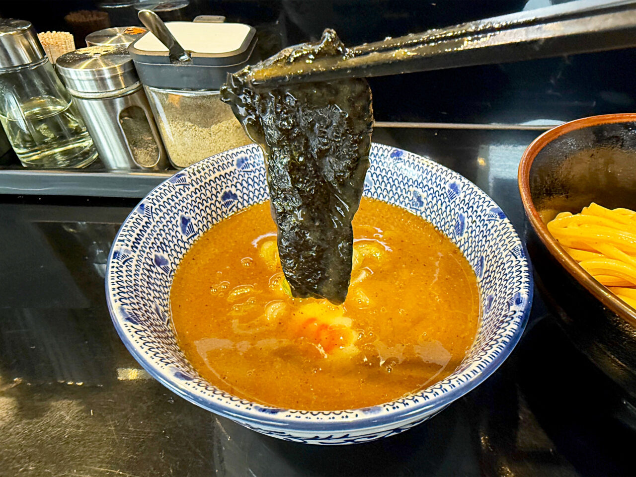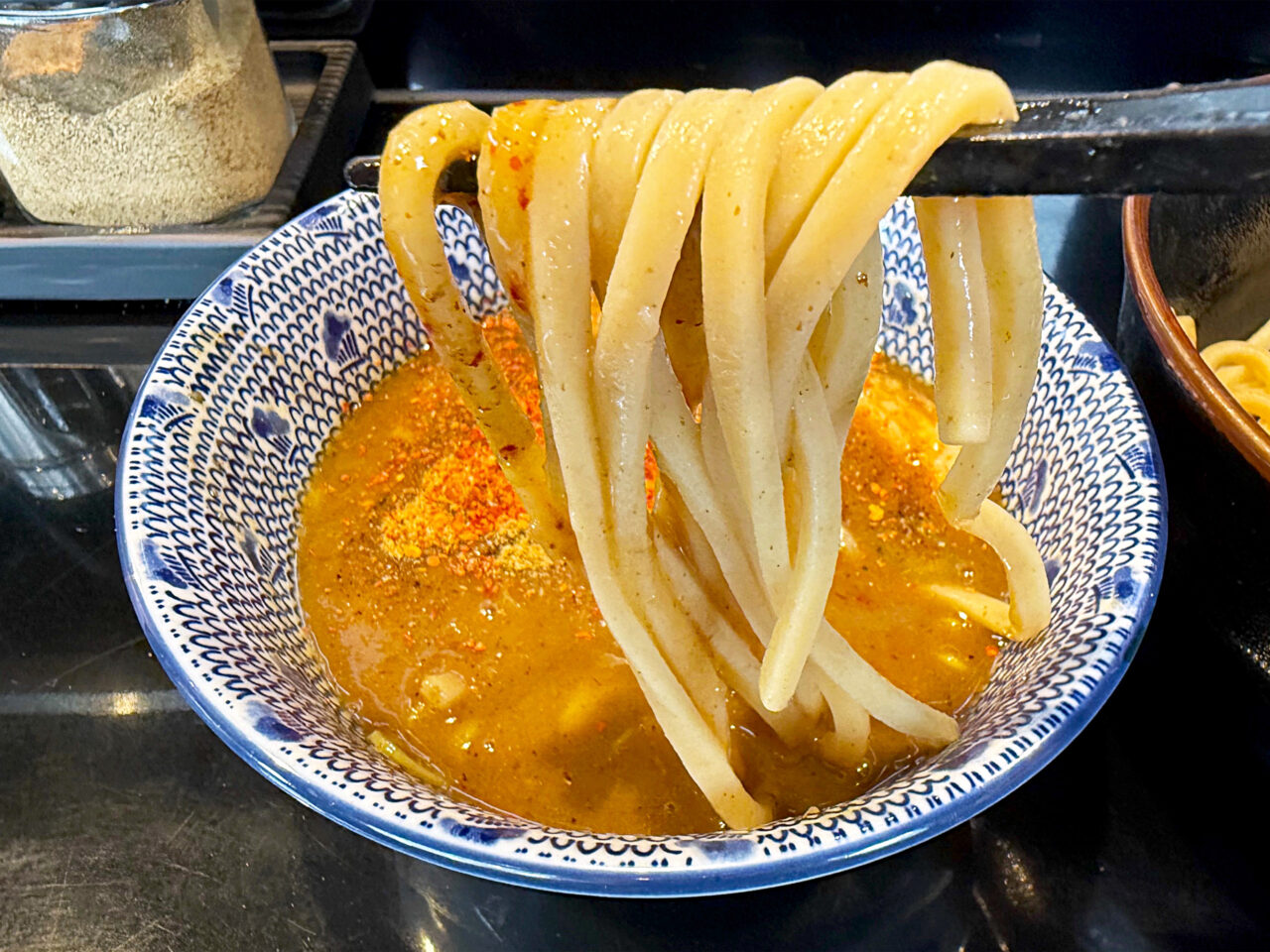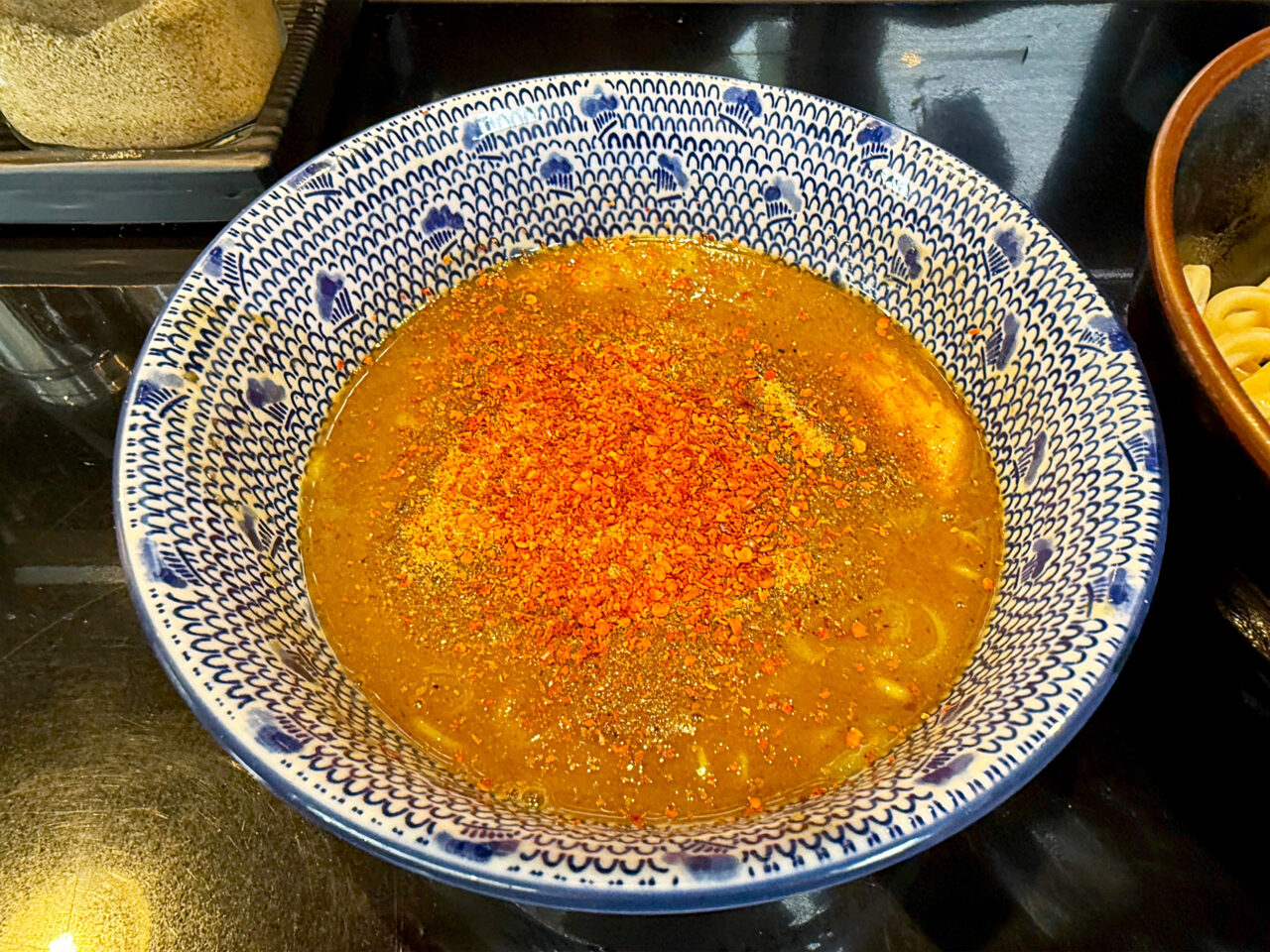 一味唐辛子は濃厚魚介系つけ麺のスープと相性が良いです。