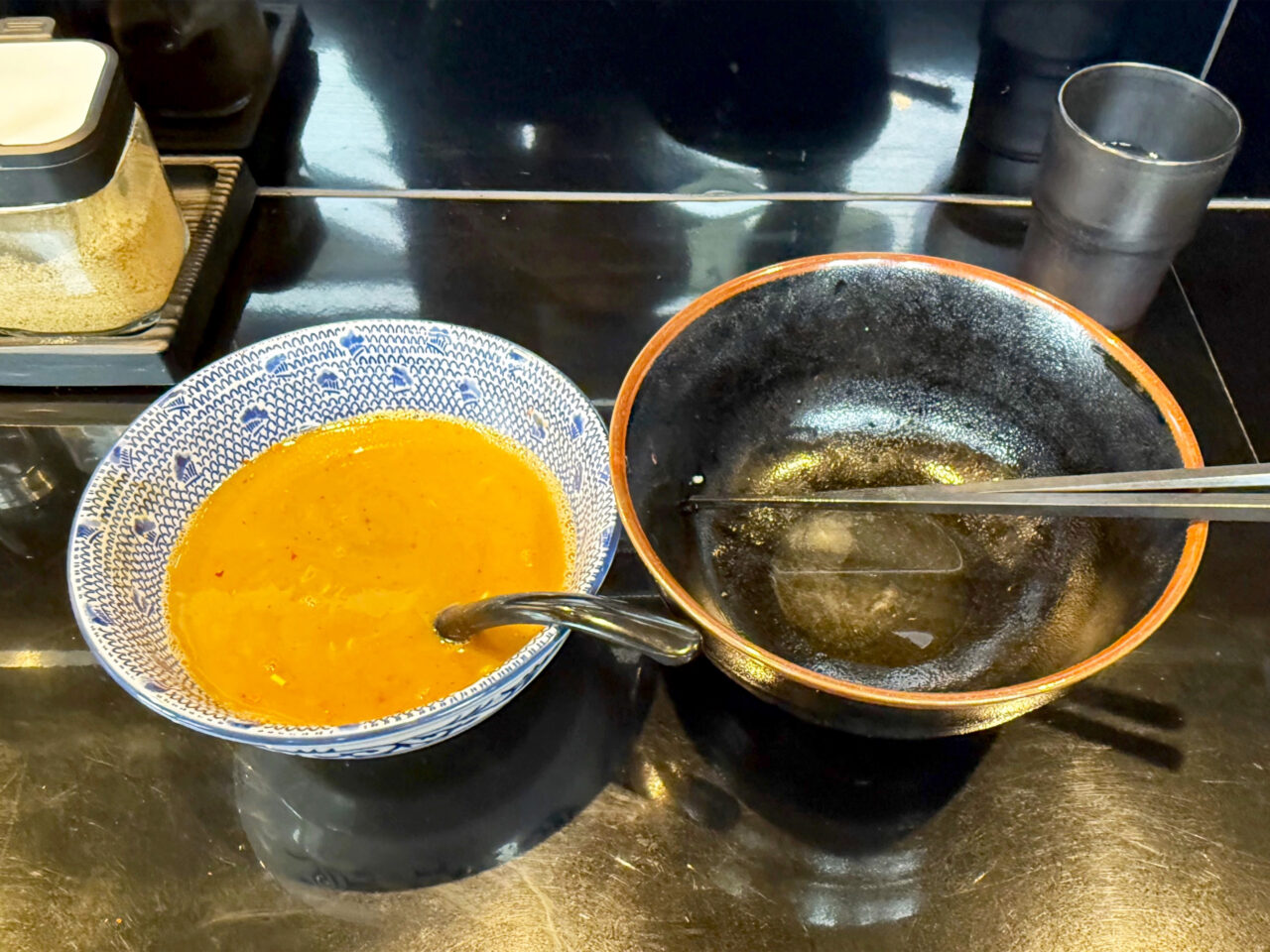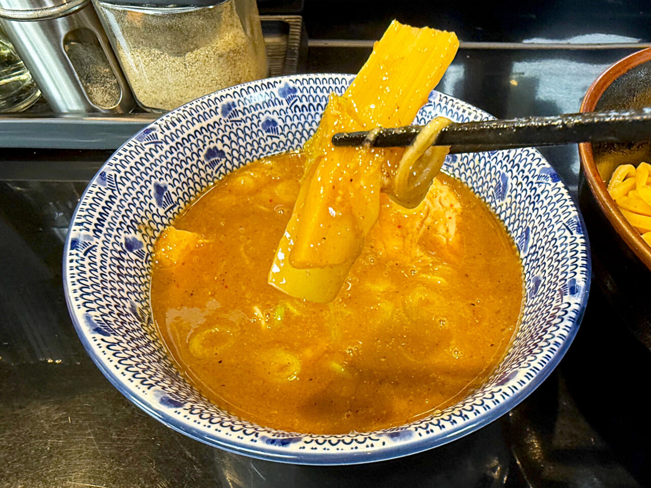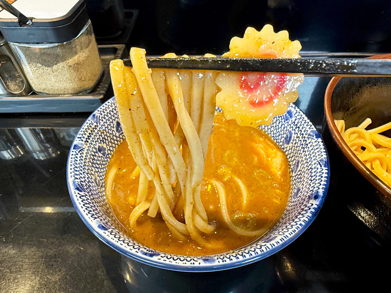 一味唐辛子は濃厚魚介系つけ麺のスープと相性が良いです。