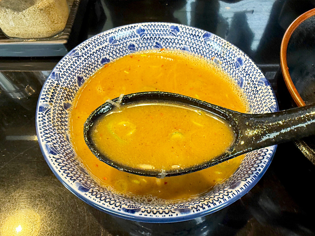 「濃厚魚介つけ麺」よりは濃度が低い事もあって、スープ自体の味がより分かり易いです。