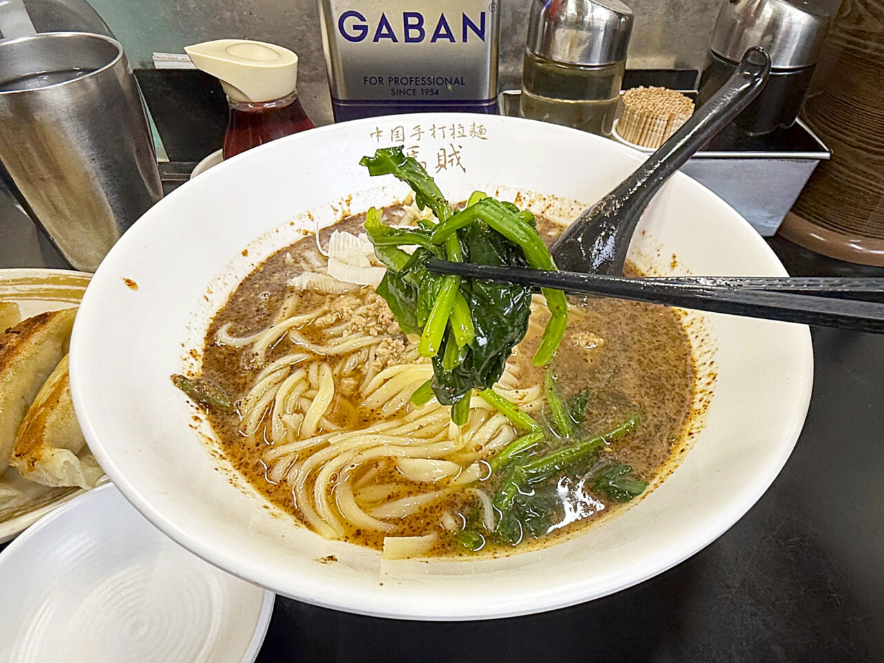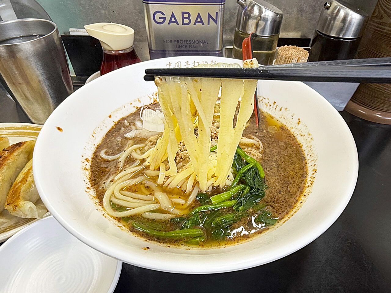 創業1977年の老舗で、手延べ麺が特色の担々麺とタンメンが人気です。