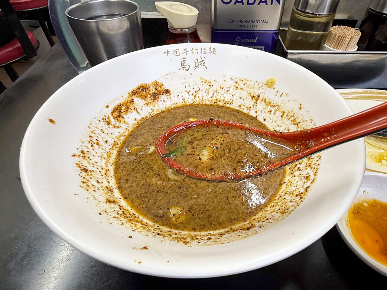 酸味と辛味のスープは、芝麻醬の黒胡麻の風味とまろやかさが有って唯一無二の味です。