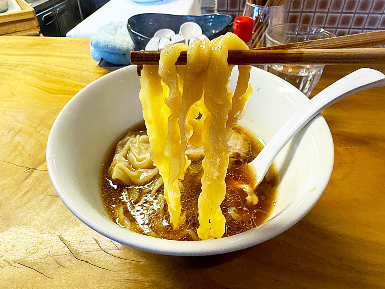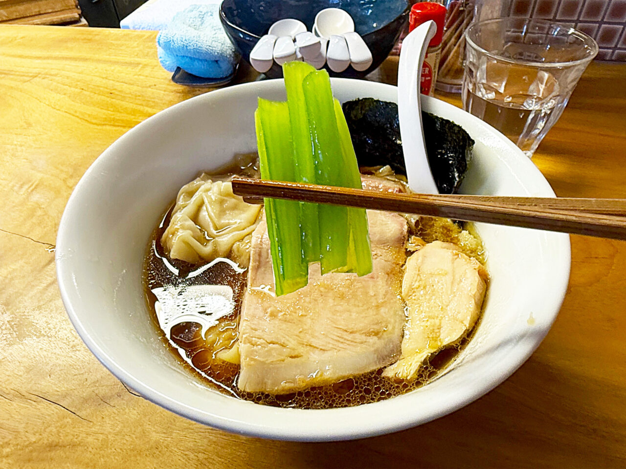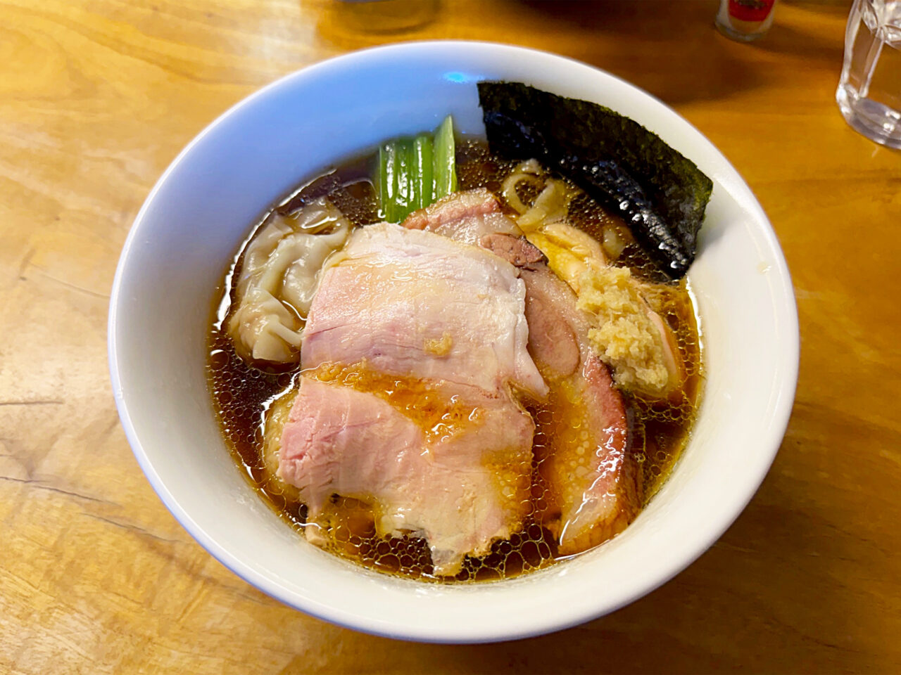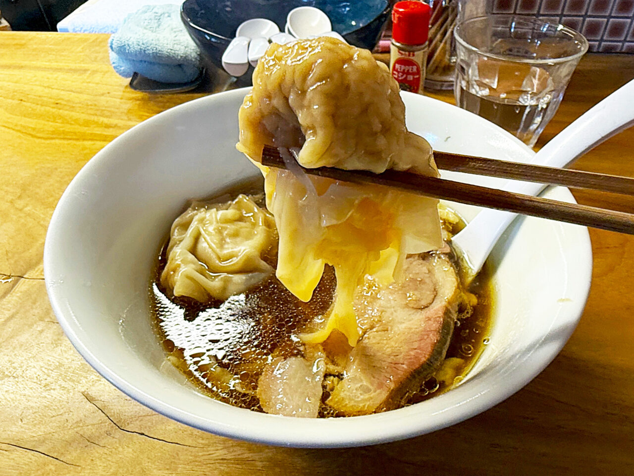 キレのある醤油味スープに唯一無二の手打ち麺、美味いチャーシューにワンタンと、全方位にスキの無い素晴らしい一杯です。