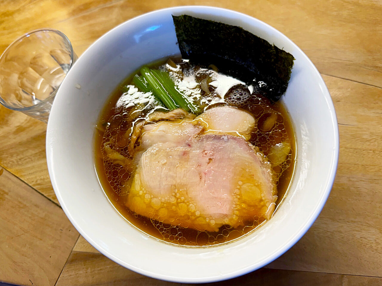 たっぷりスープを吸った海苔の香ばしさと、キレのある醤油味スープとモチモチ食感の麺がとても美味しいです。