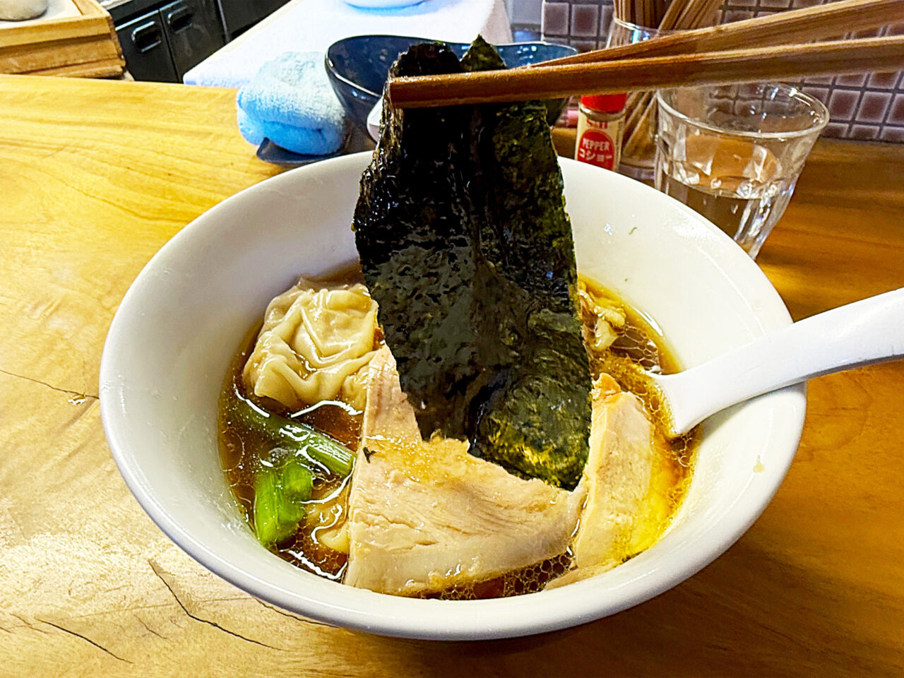 「手打ち特中華そば」よりも「手打ち雲呑生姜そば」を選んでしまう理由です。