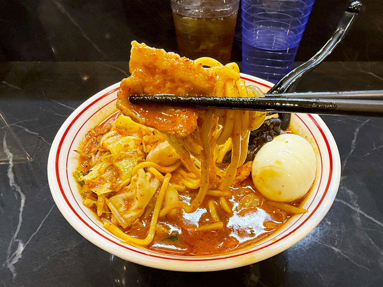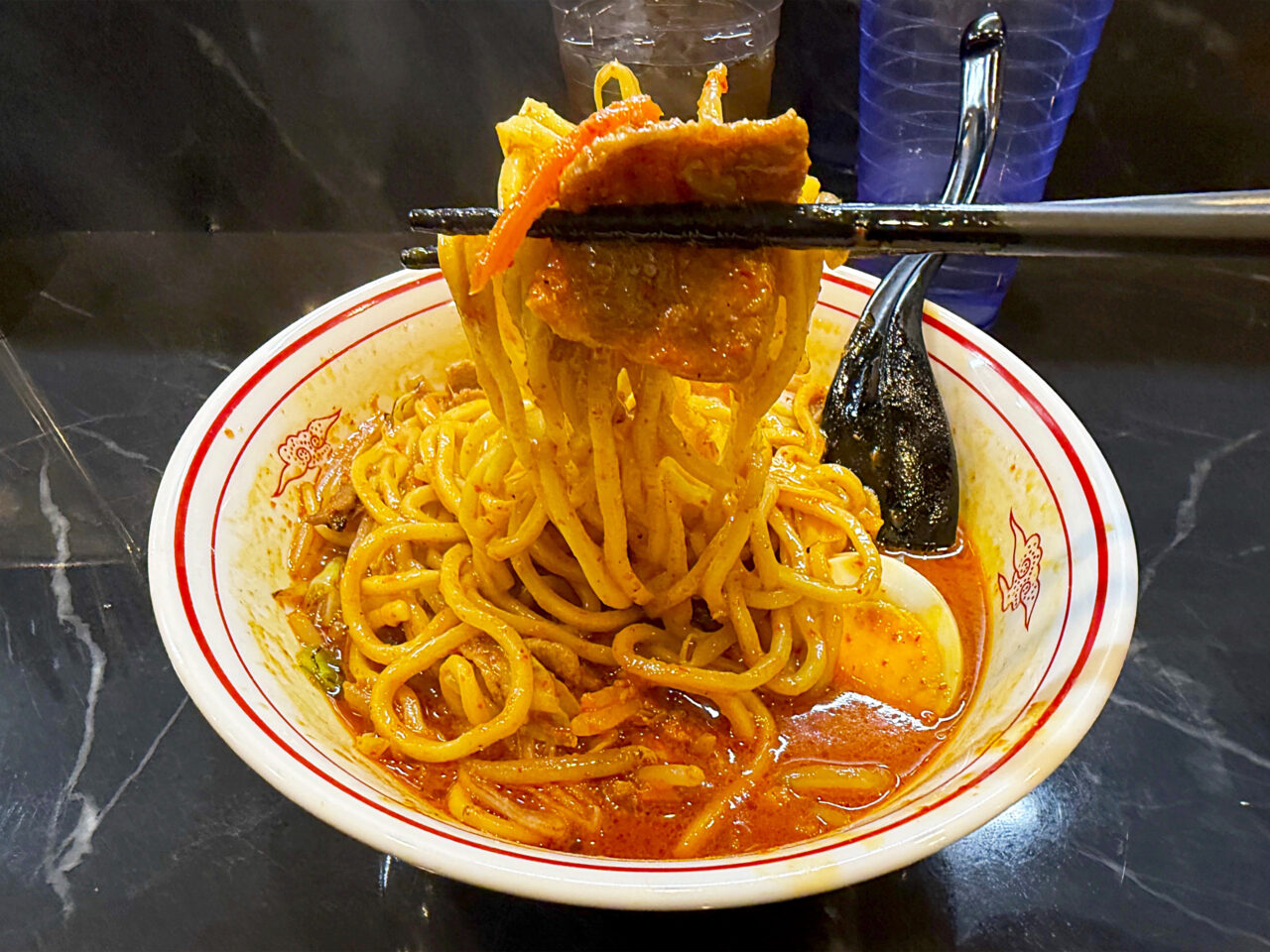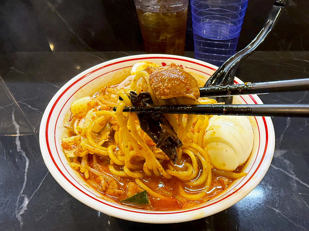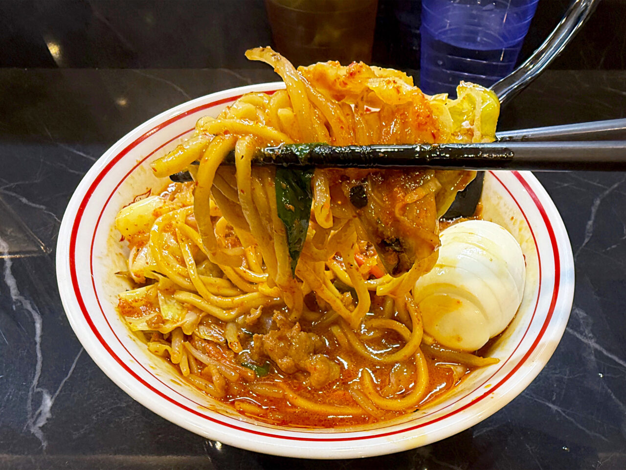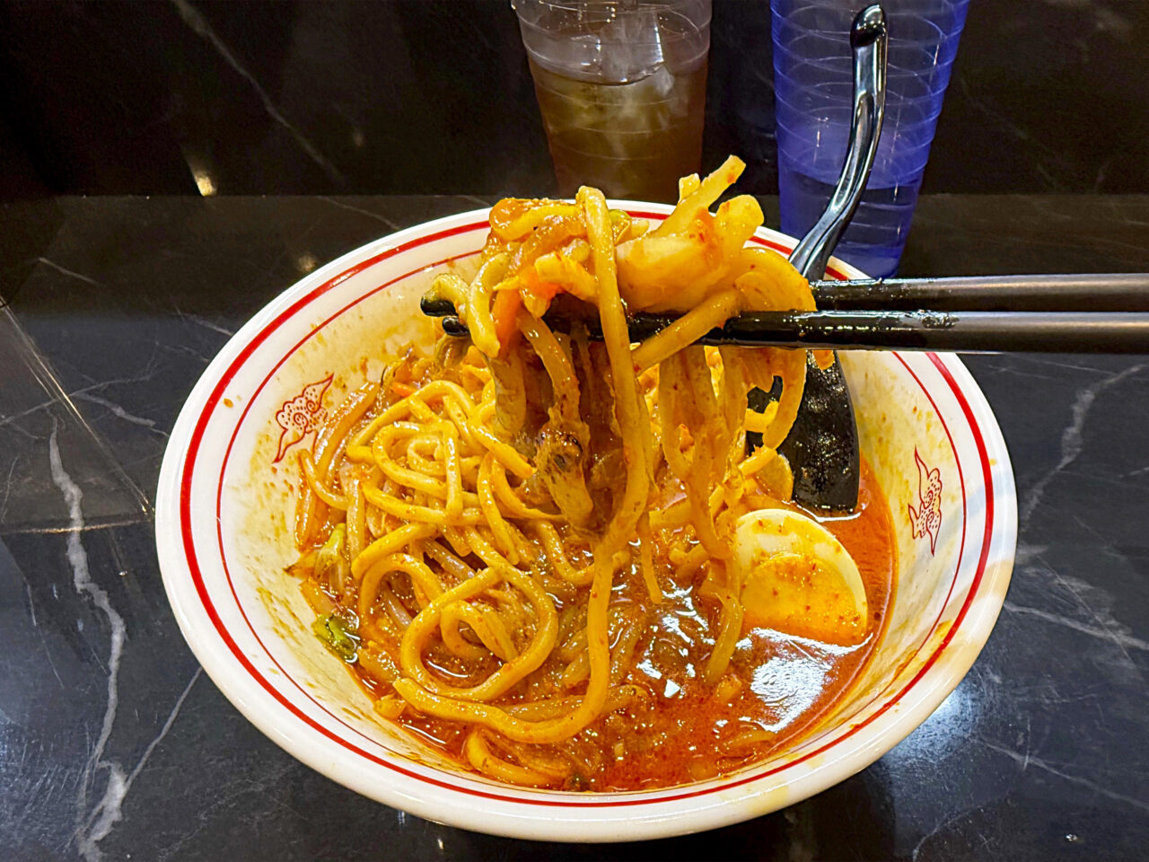 辛さ2倍だけに、迂闊に啜ると咽せてしまいます。