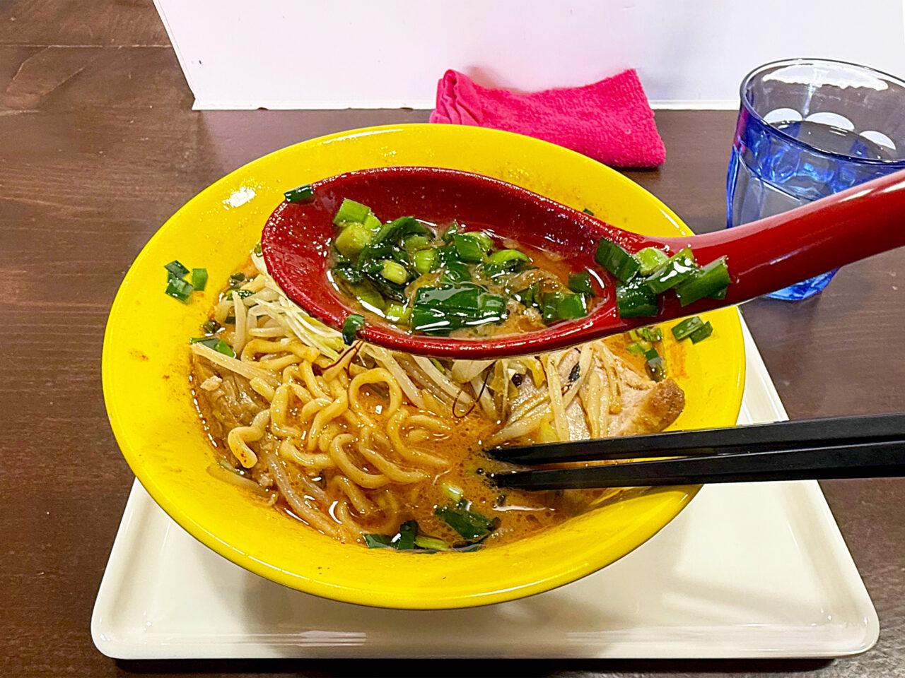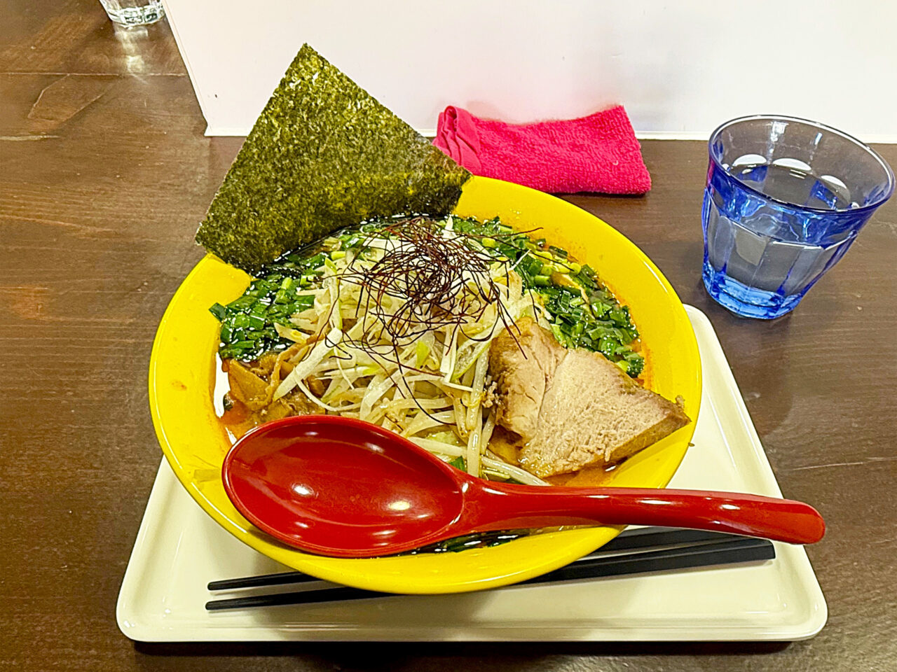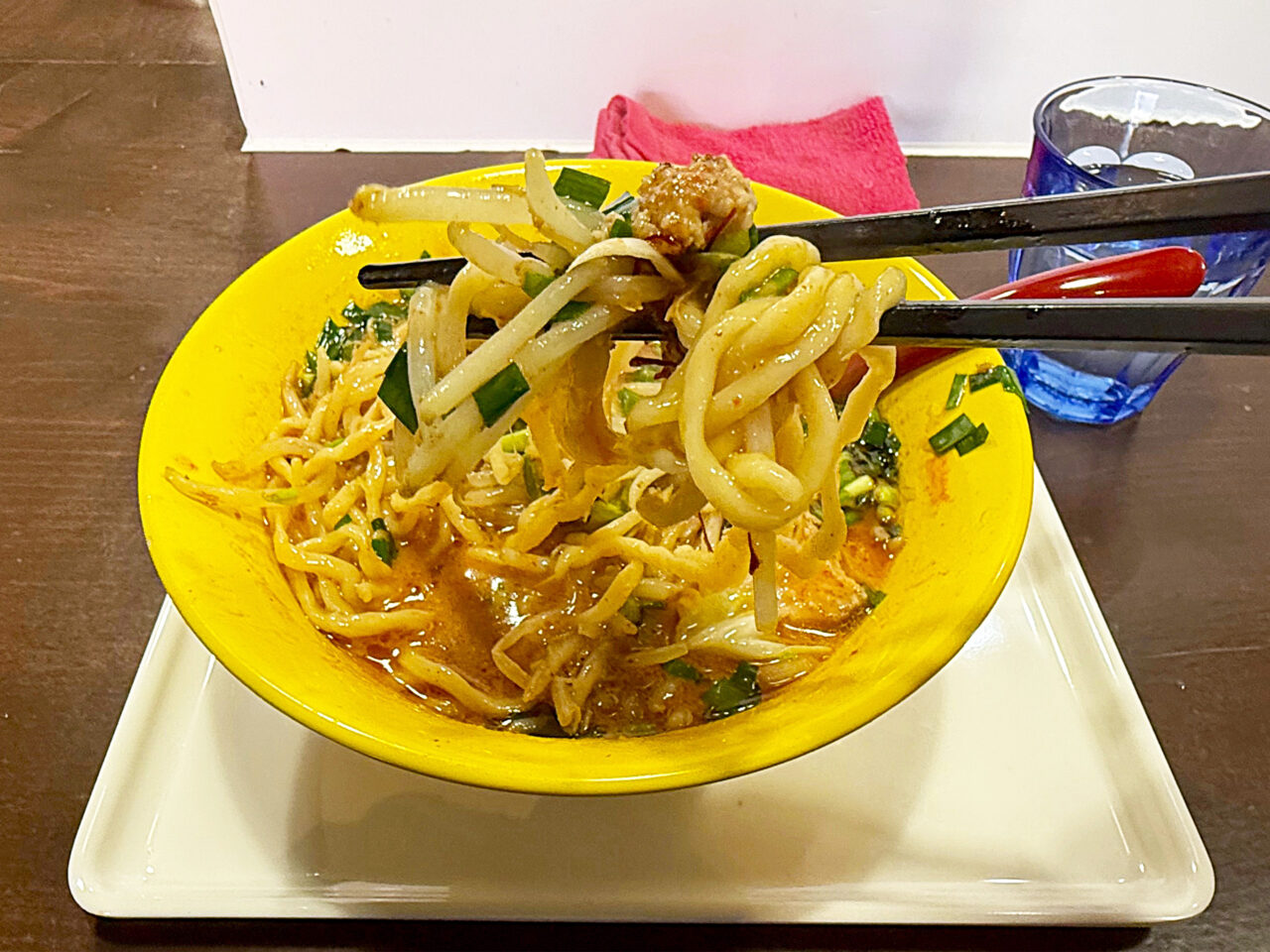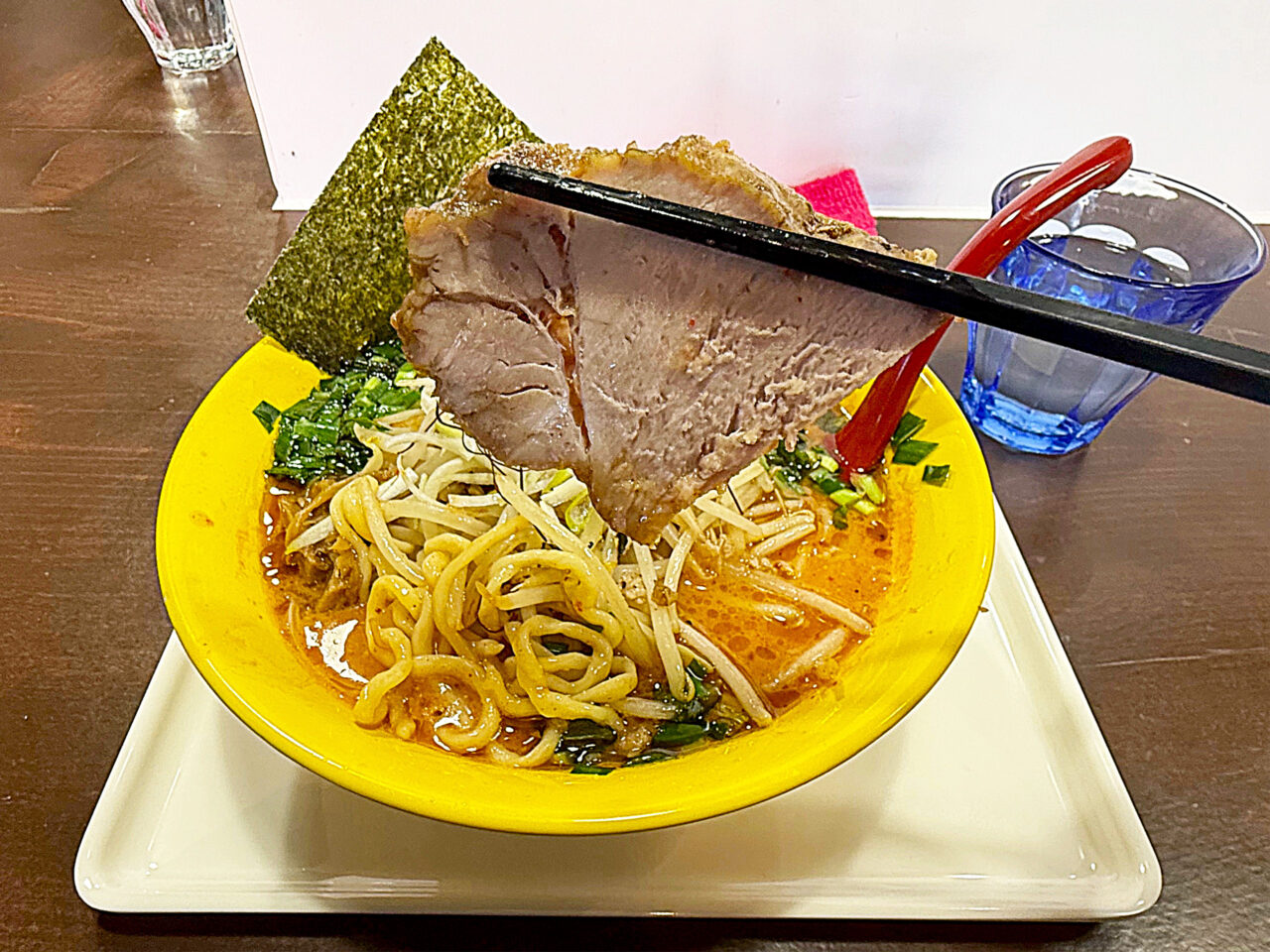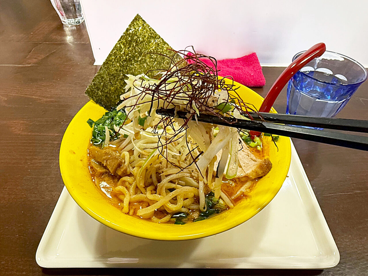 モチモチの自家製中太手もみ麺とシャキシャキで香ばしいモヤシの風味に、鶏豚スープ+味噌ダレ+ピリ辛+ニラの風味+ゴマ油の香ばしさで、とても美味しい一杯に仕上がっています。