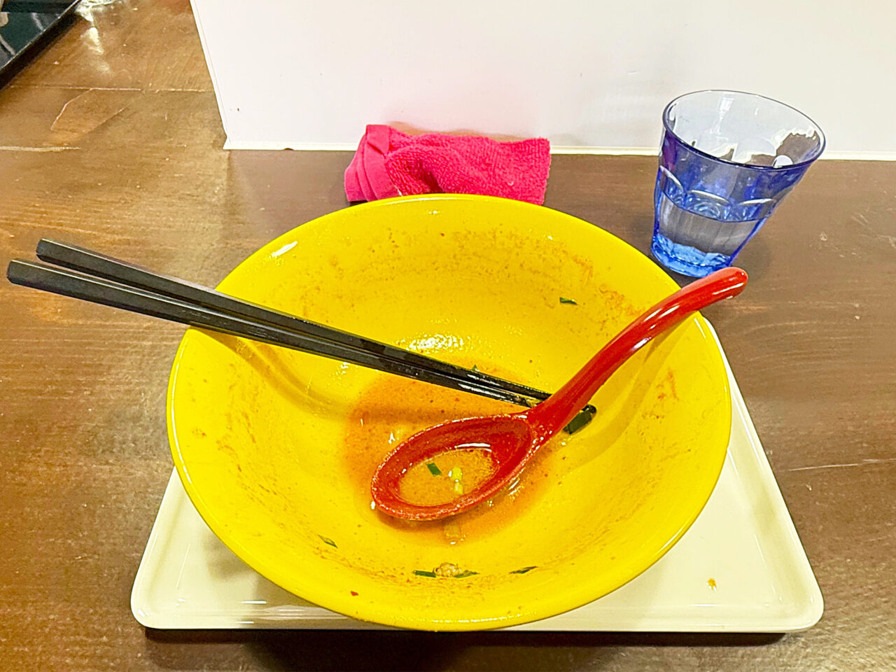 麺と具を食べ終えて、スープを味わいます。