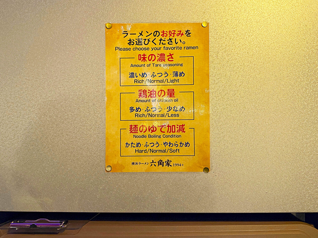 味の濃さ・鶏油の量・麺の茹で加減を選べます。
