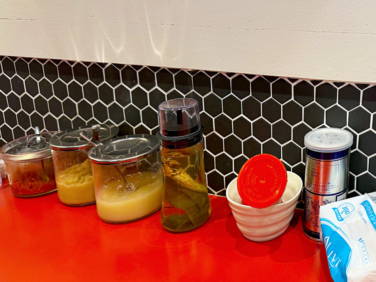豊富な味変アイテムも家系ラーメンの特徴です。