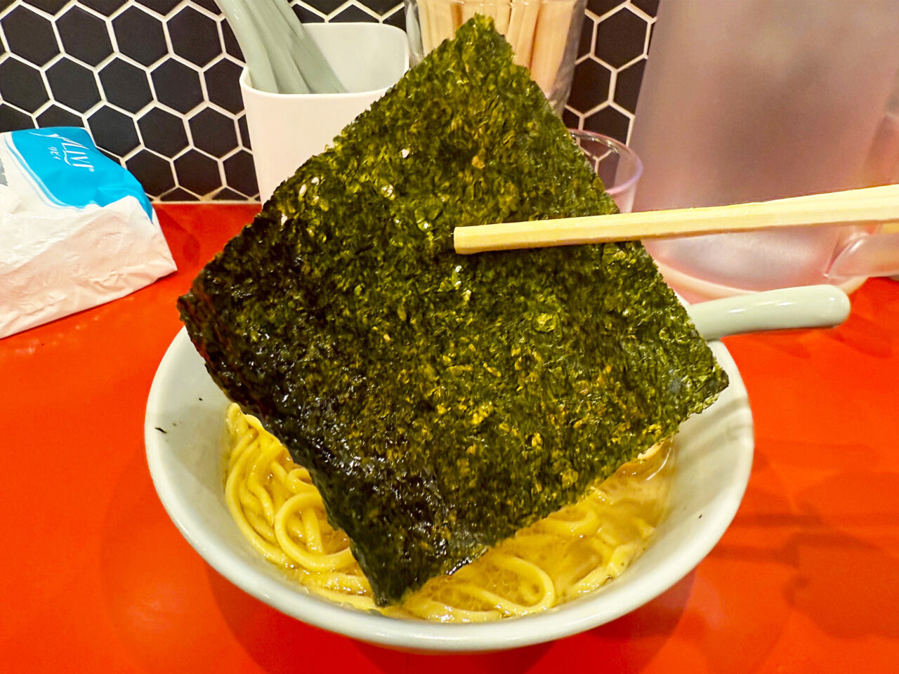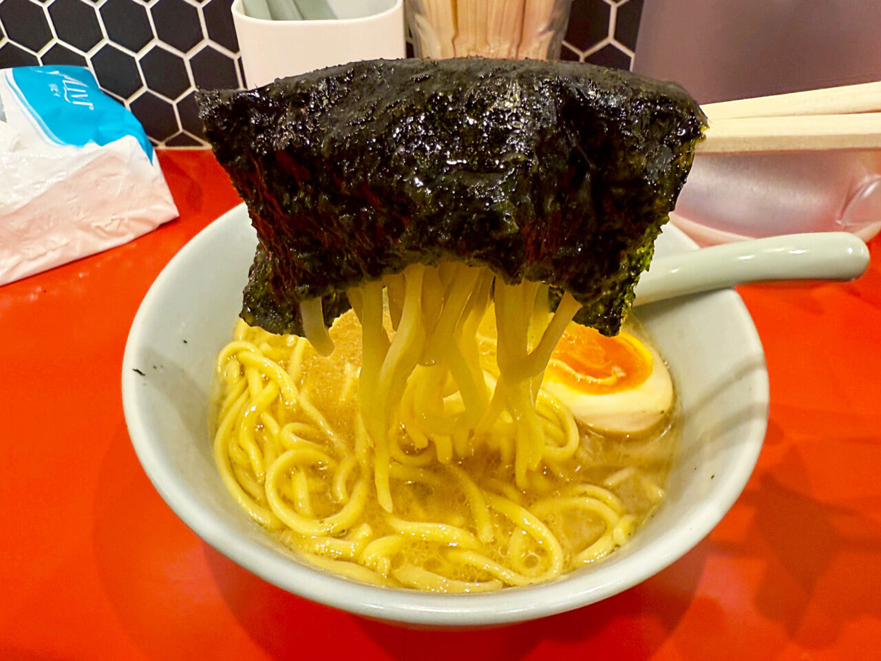海苔の香ばしい風味と乳化したまろやかなスープが美味しいです。