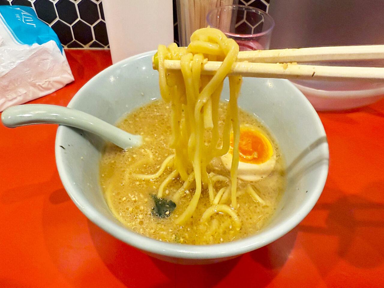 まろやかなスープは、豚骨のクリーミーさと脂の甘みがしっかり出ていて、鶏ガラの旨みと鶏油で旨みをプラスした素晴らしい味です。