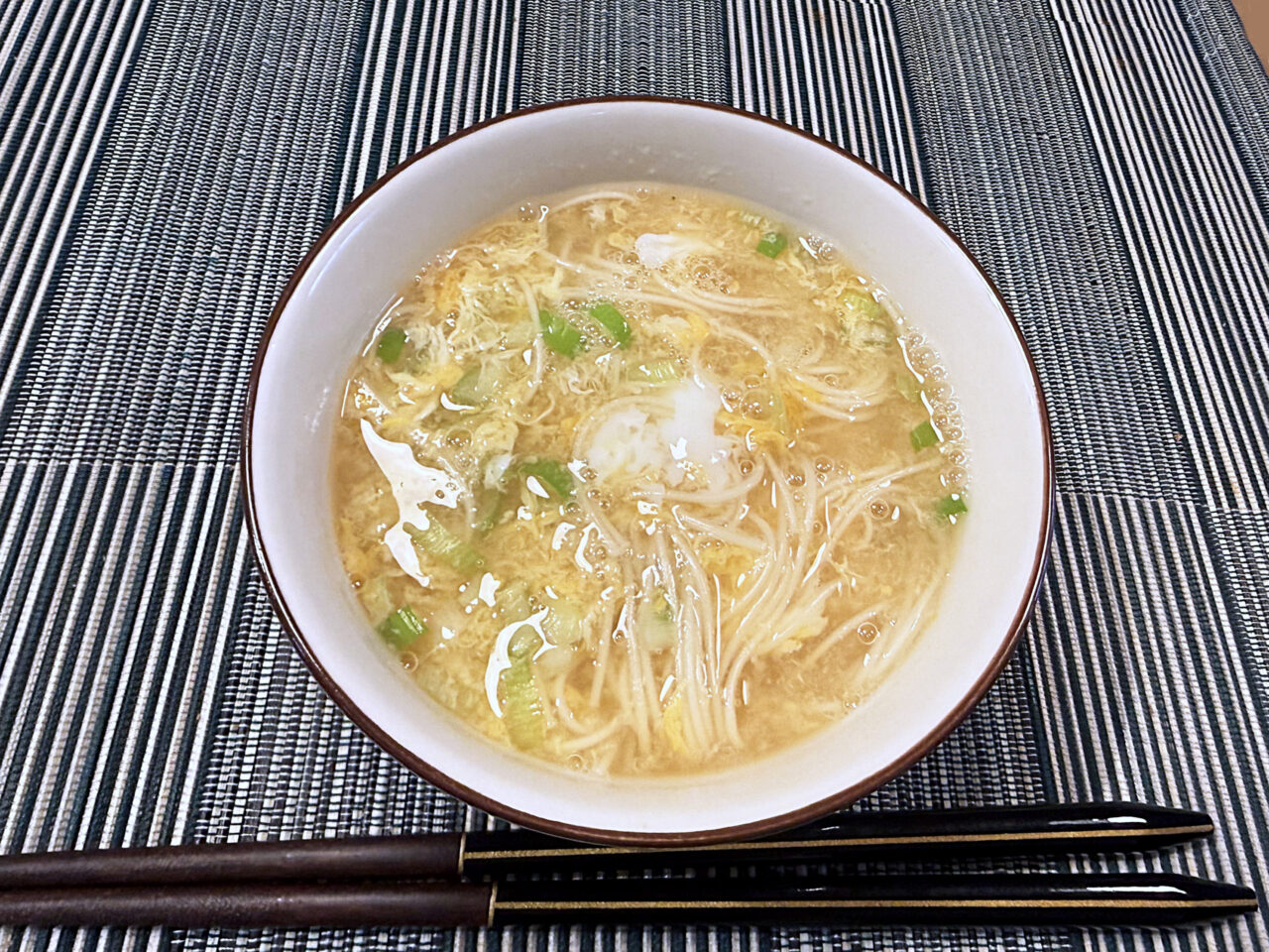 卵は入れてすぐに箸でかき混ぜてしまうと固まる前に濁ってしまうので、ワンテンポ(20〜30秒)置いてから混ぜる