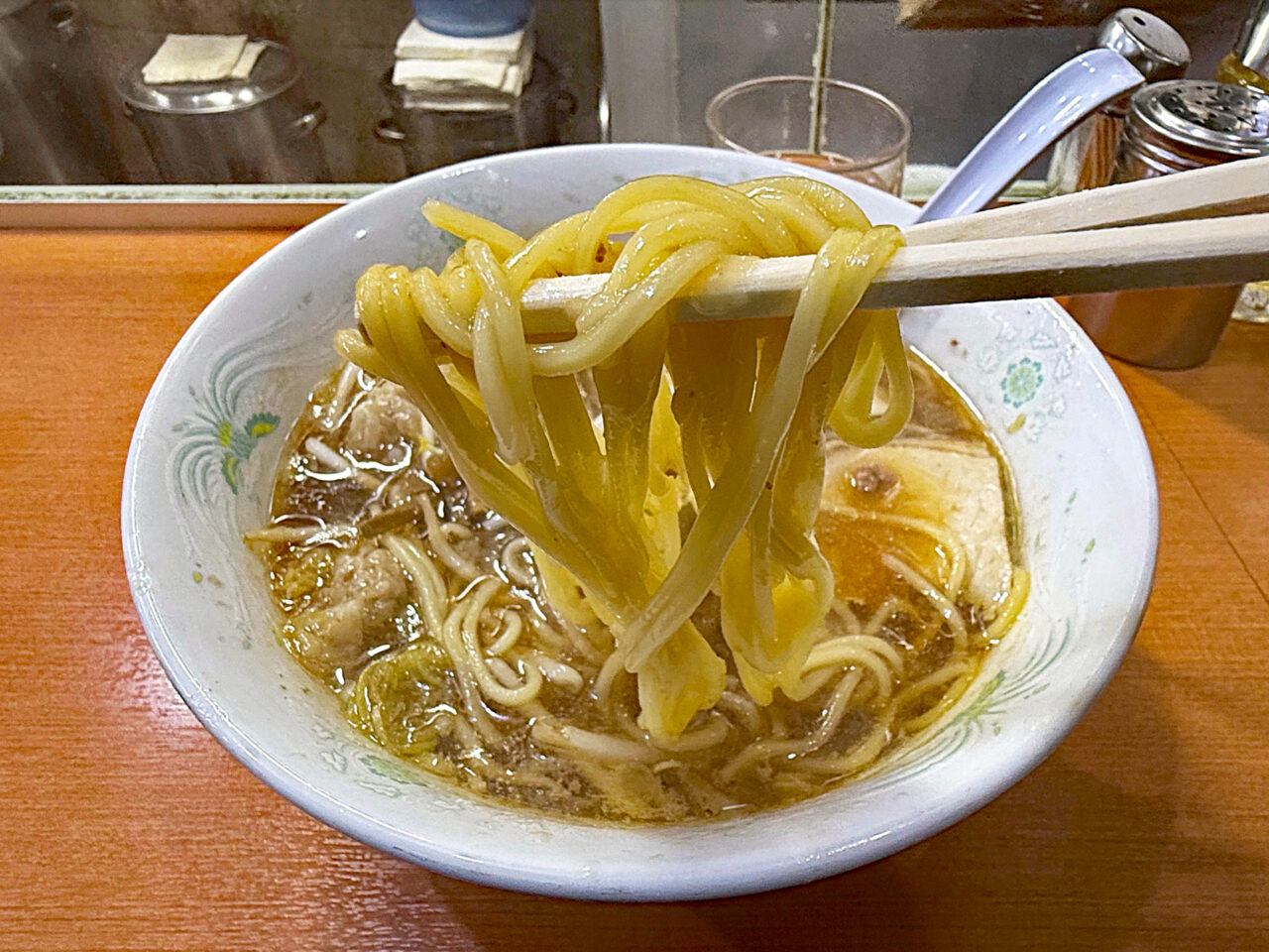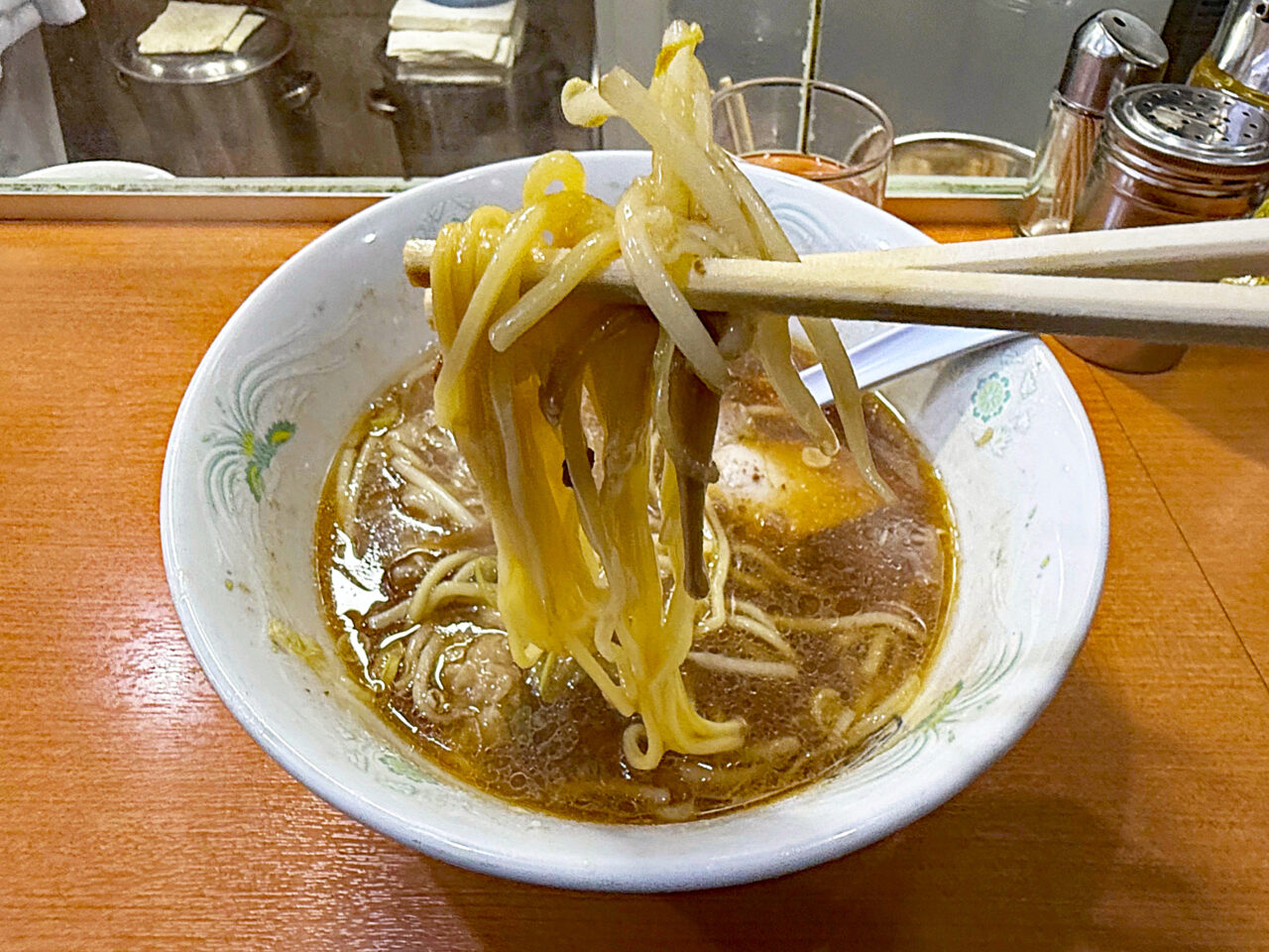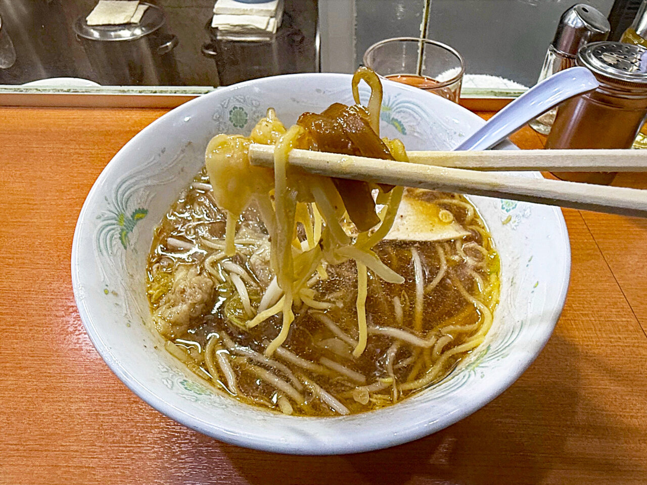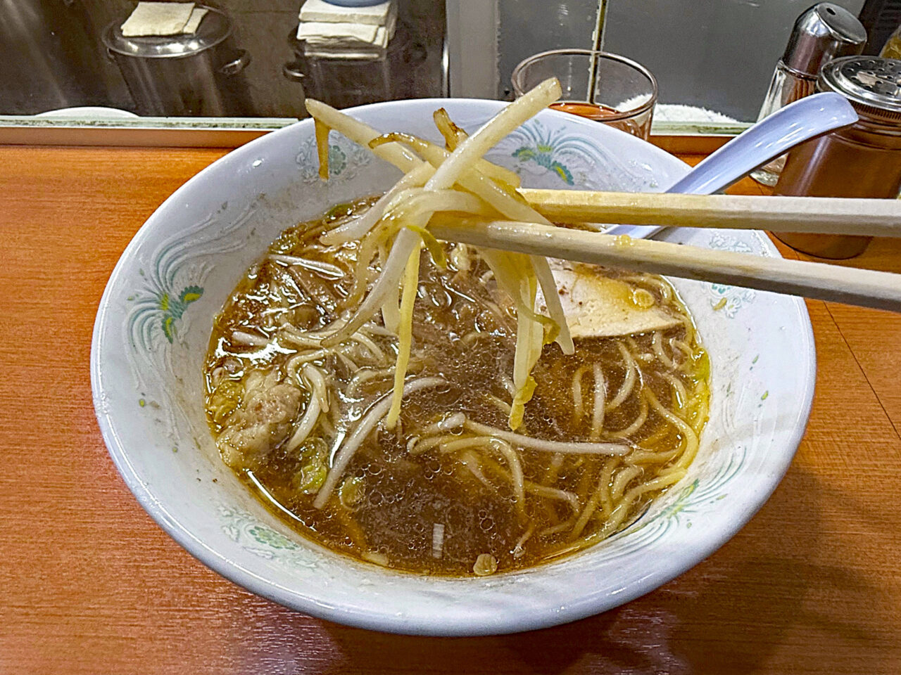 シャキシャキのモヤシと麺とメンマがとても美味しいです。
