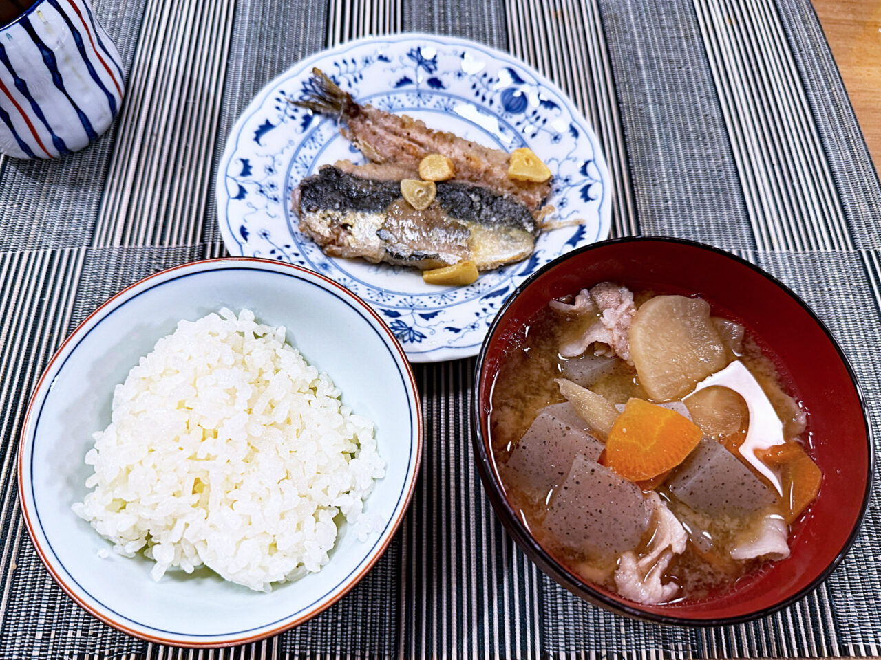 と言う訳で、「鰯のガーリックソテーと豚汁」でした。
