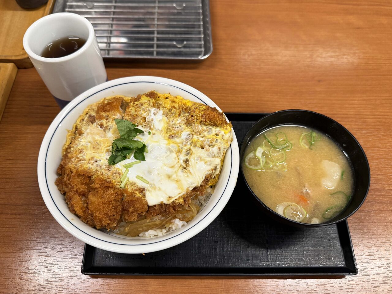「とん汁」の温かさと塩味が「カツ丼」の甘辛い味付と合っていて美味しいです。