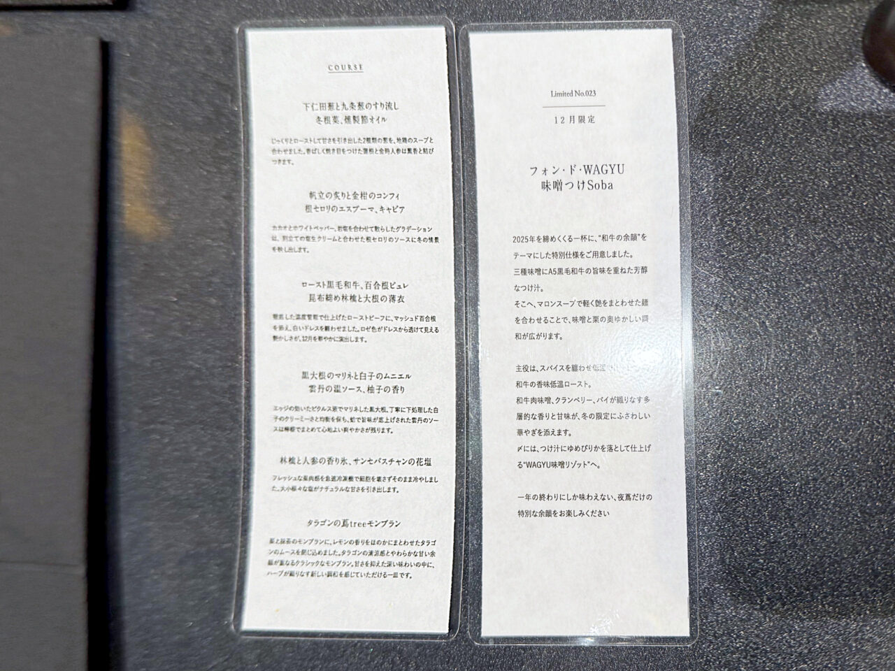 「Japanese Soba Noodles蔦」の会員制「夜蔦」の12月の限定ラーメン 「フォン・ド・WAGYU 味噌つけSoba」 と、Limited Courseでしたが、どれも素晴らしい逸品でした。