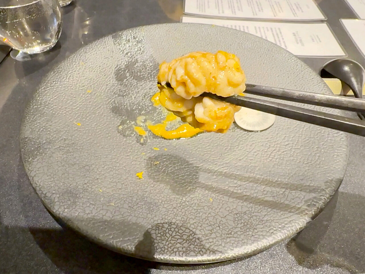 クリーミーな白子に檸檬風味の雲丹のソースがとても良いです。