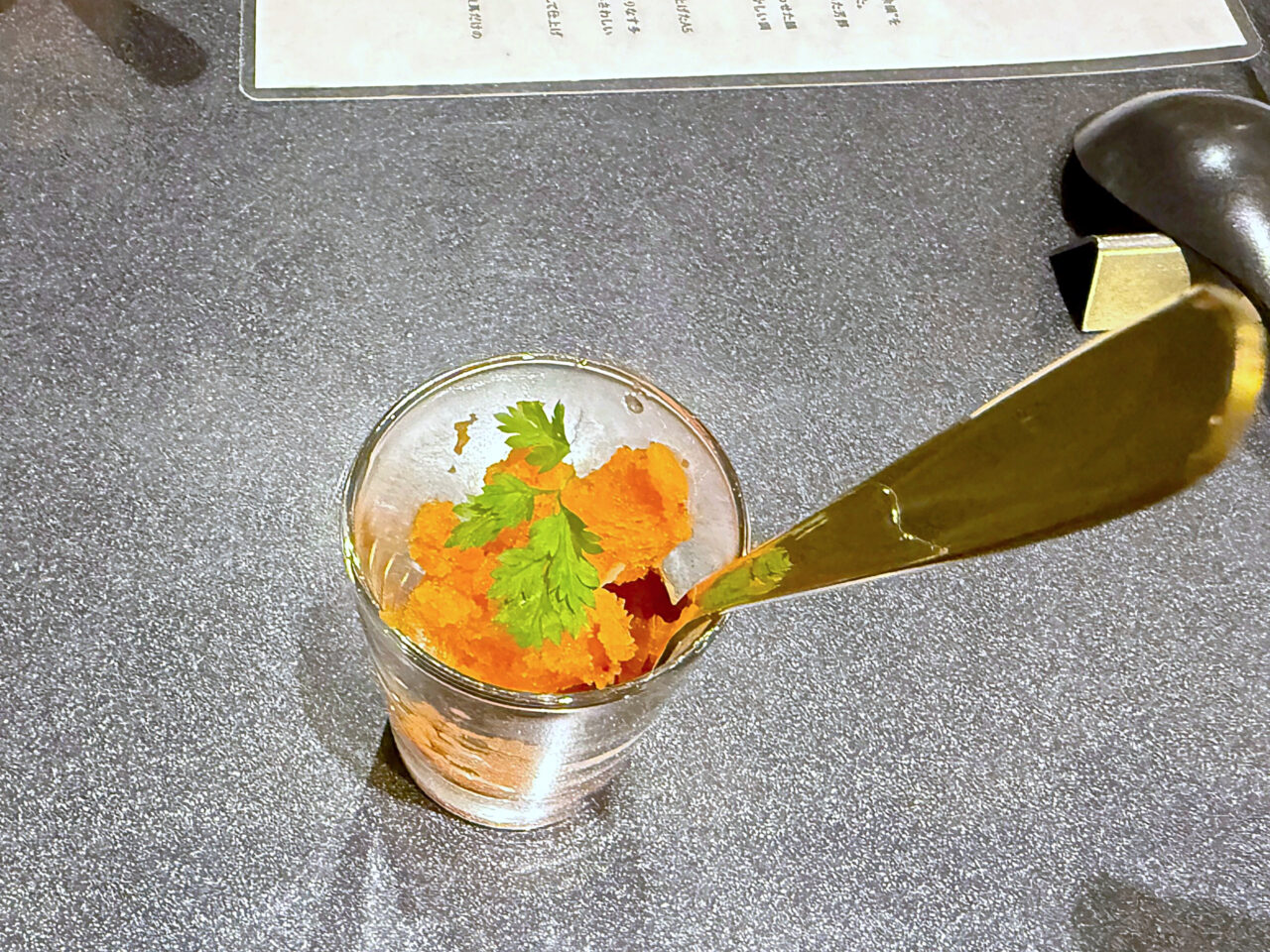 「林檎と人参の香り氷、サンセバスチャンの花塩」。
