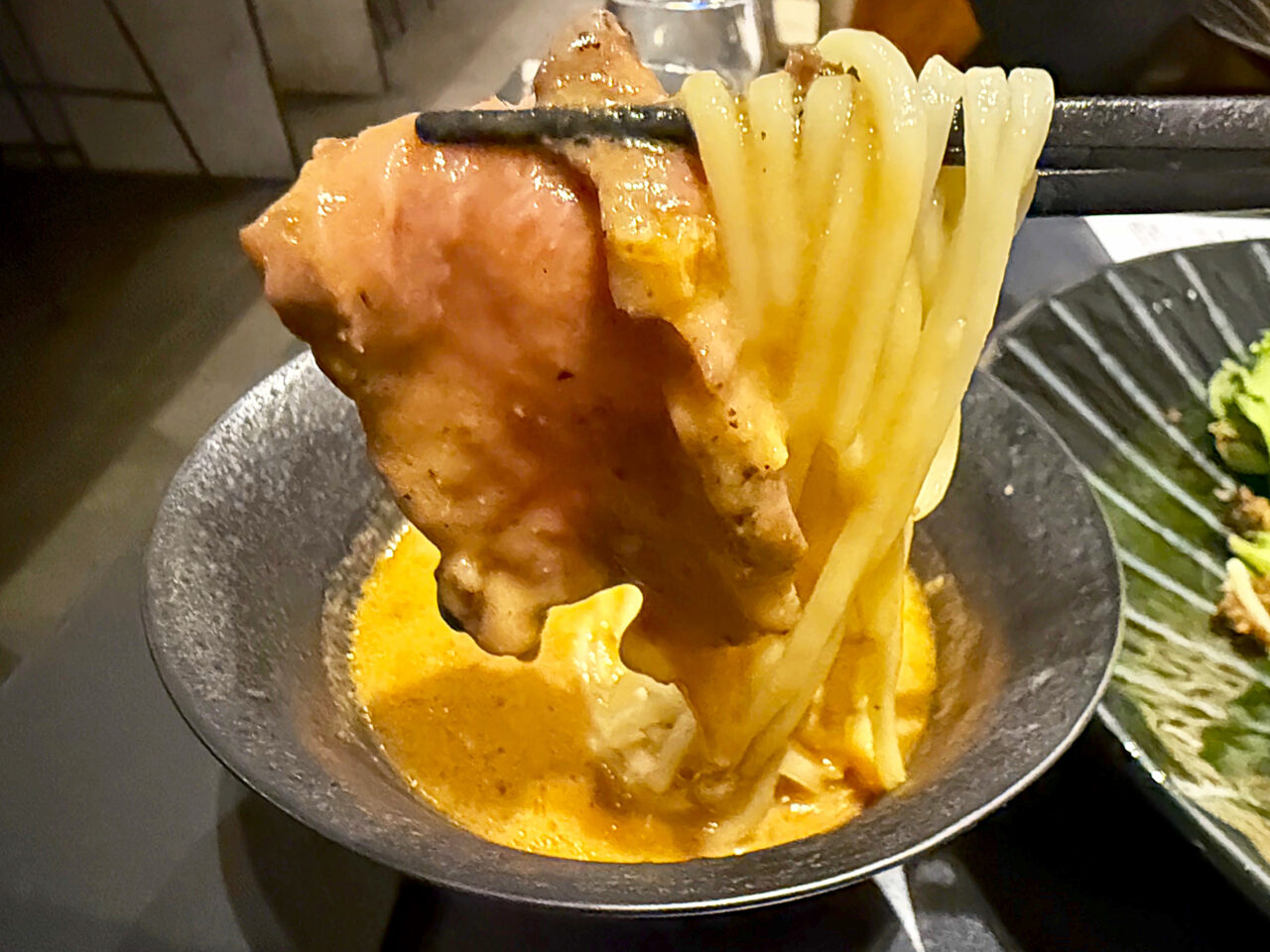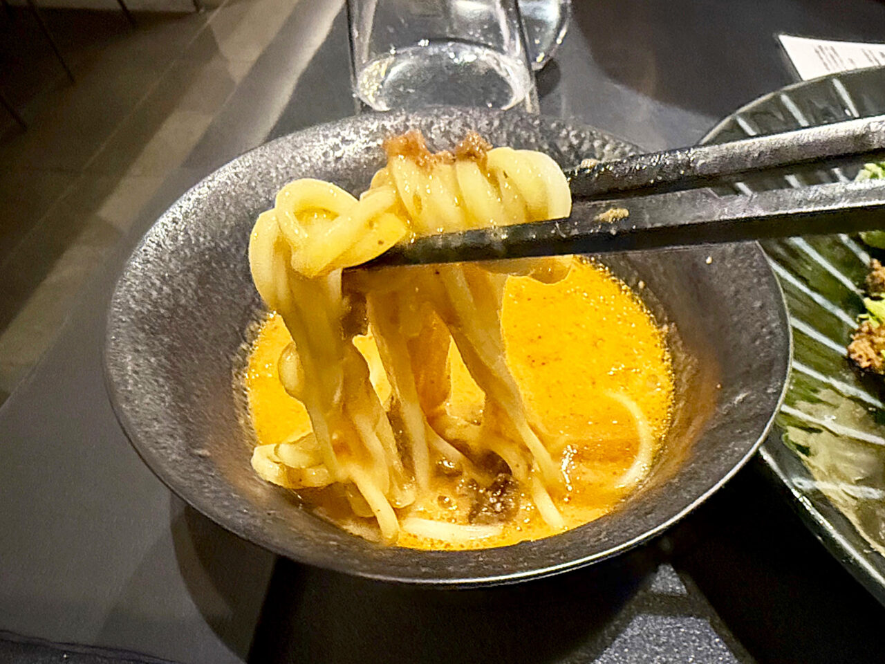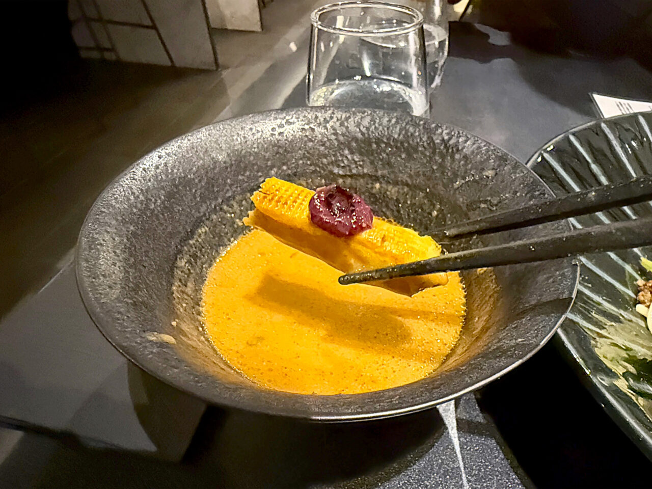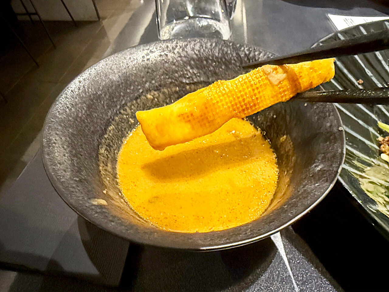 メインの「フォン・ド・WAGYU 味噌つけSoba」は、三種の味噌にA5黒毛和牛の旨味を重ねた芳醇なスープと、マロンスープをまとわせた麺が美味しいです。
