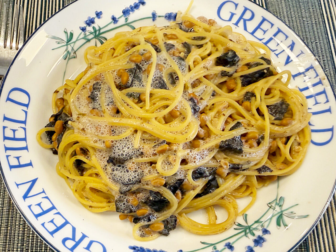 「【海苔納豆クリームパスタ】」の完成です。