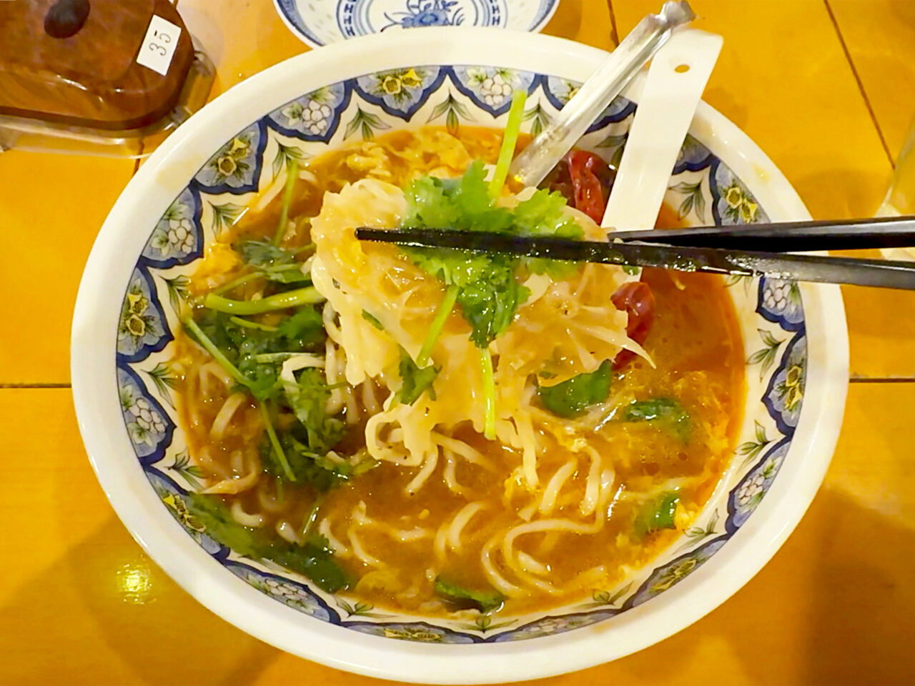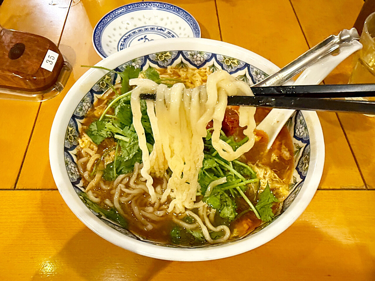 酸辣湯麺にはパクチー(コリアンダー)がとても良く合います。