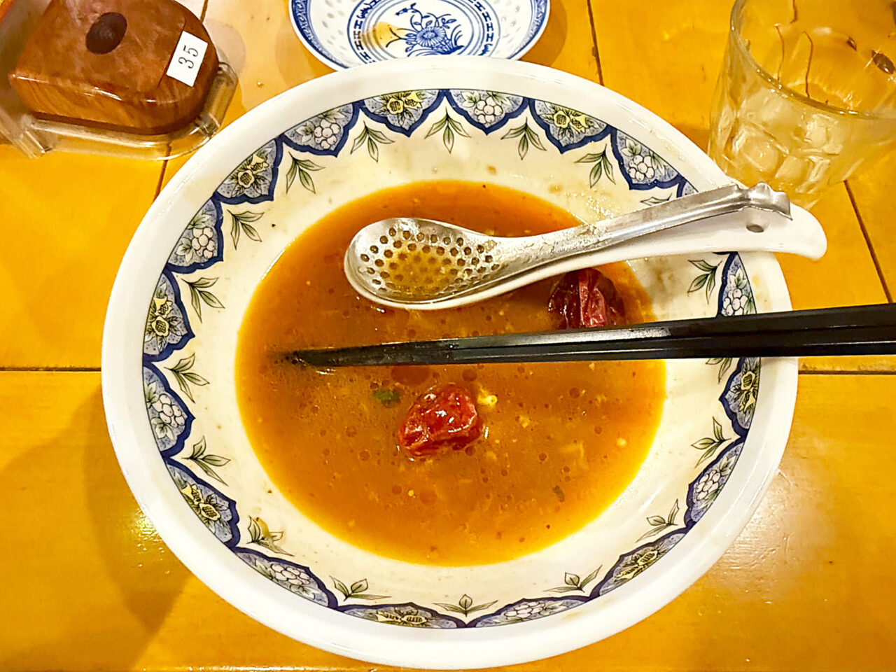 頑張って具材を食べたので、スープを味わいます。