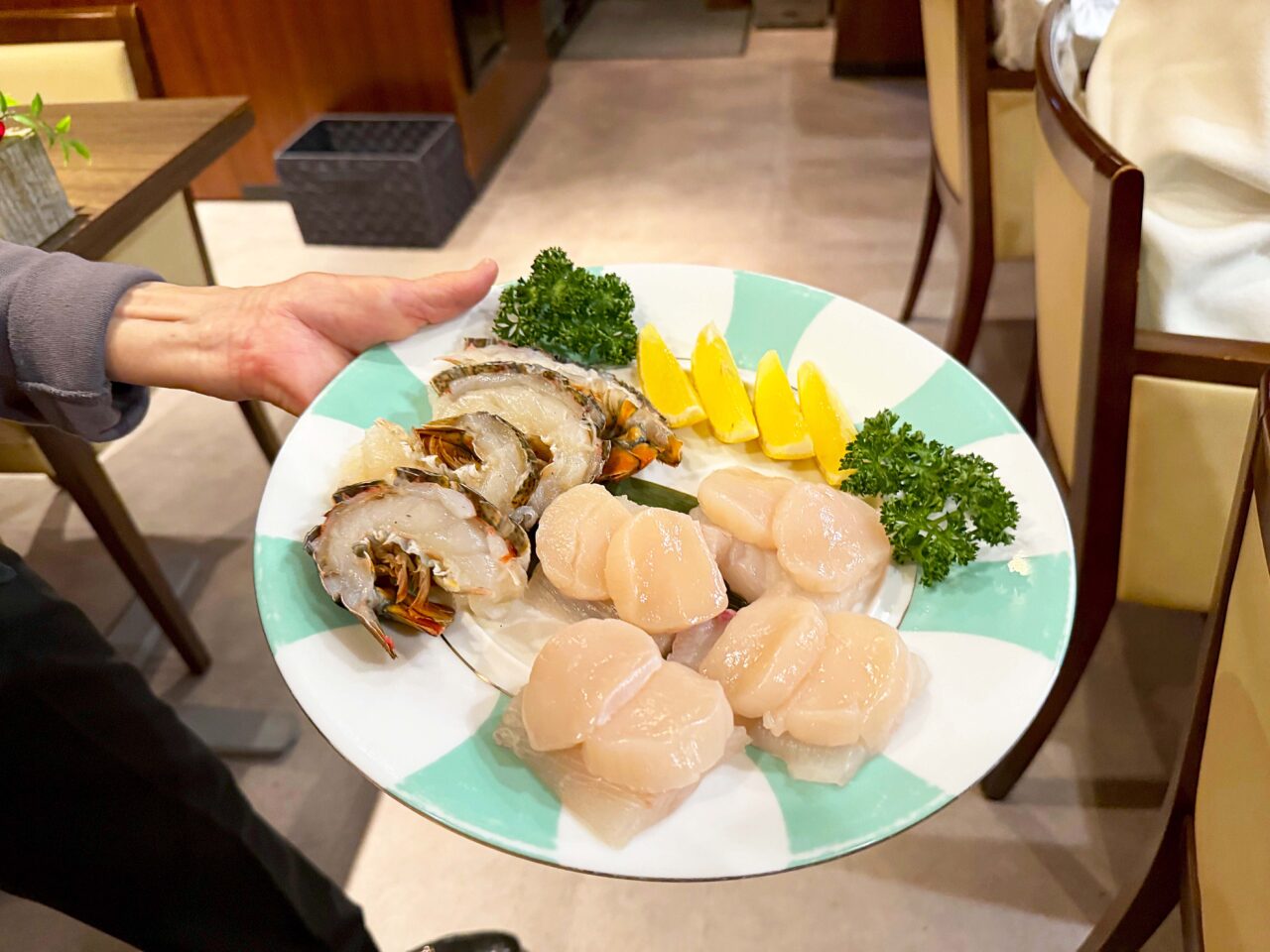 この日の魚介ステーキはホタテとメバル。