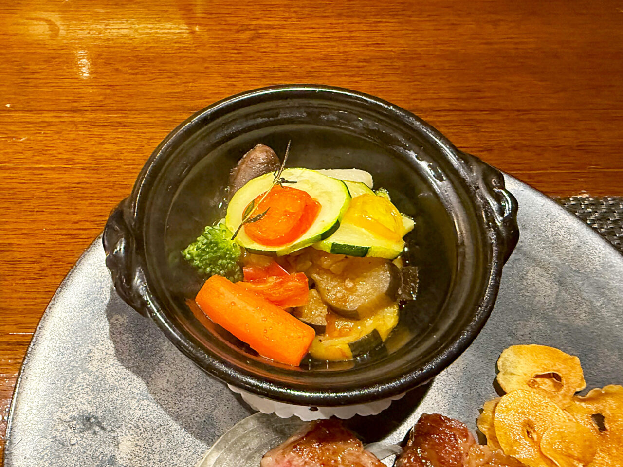 メインの「神戸牛リブサーロインステーキ」と「ラタトゥイユ」。