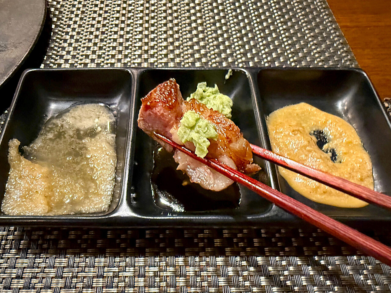 個人的には和牛には醤油と山葵が一番合う気がします。