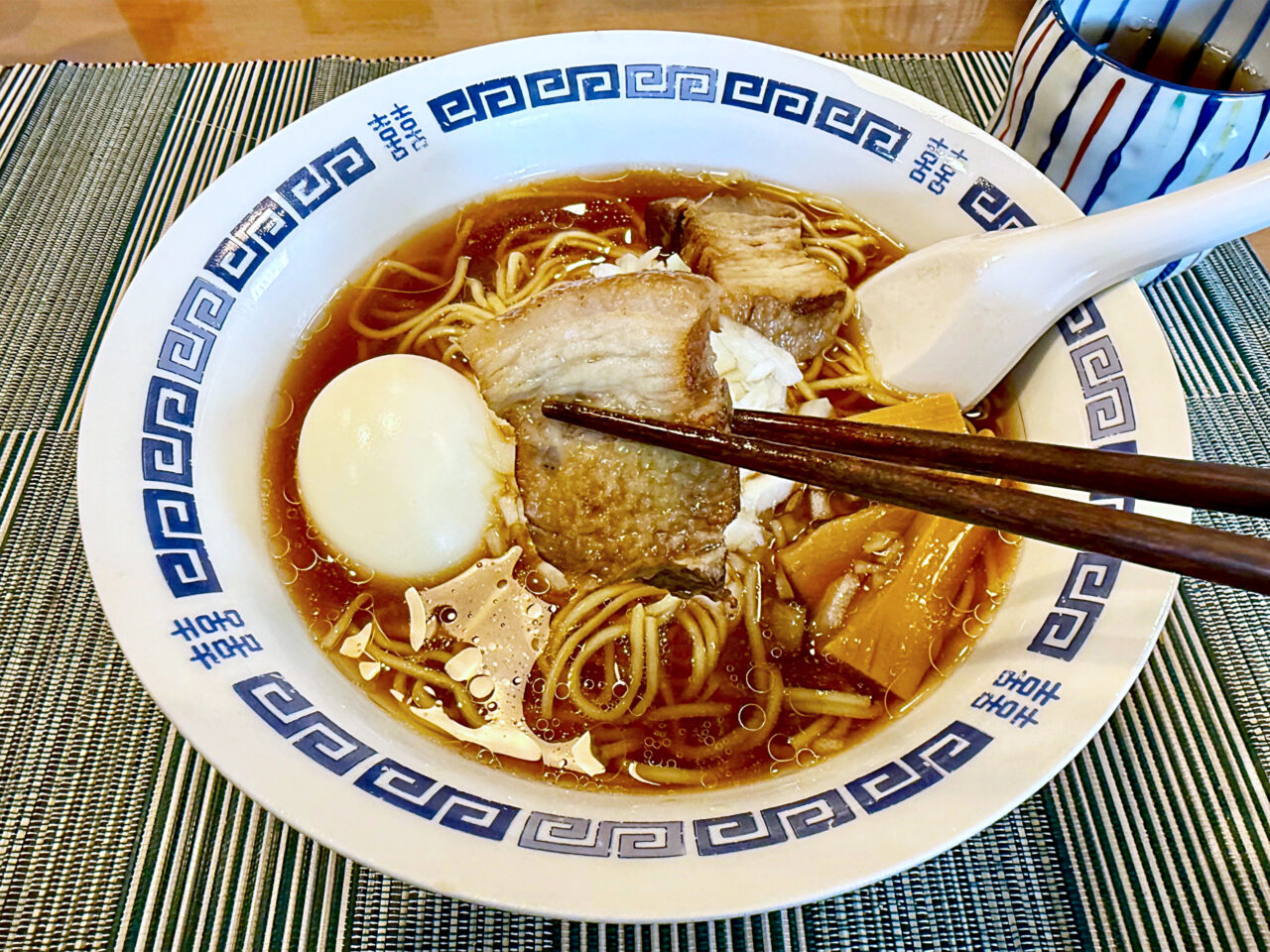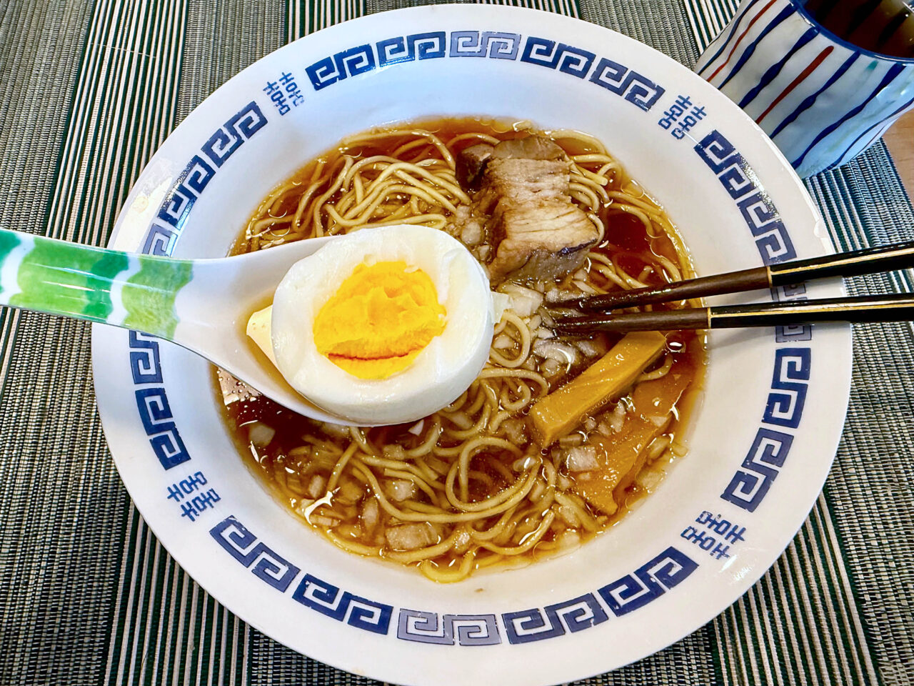 「竹岡式ラーメン」だと、味玉よりも茹で卵の方が合いそうです。