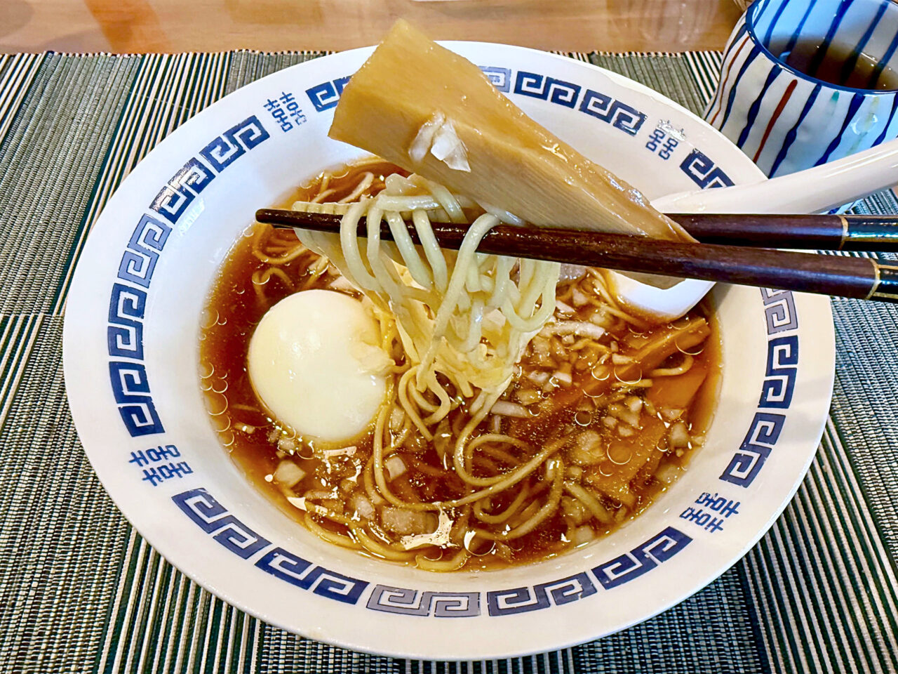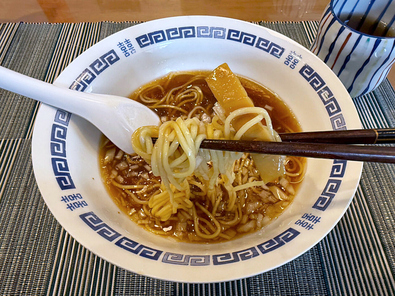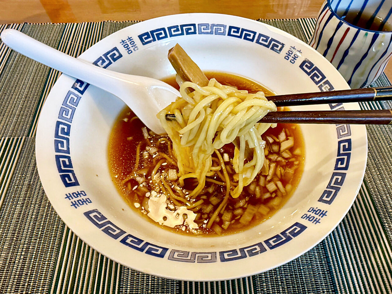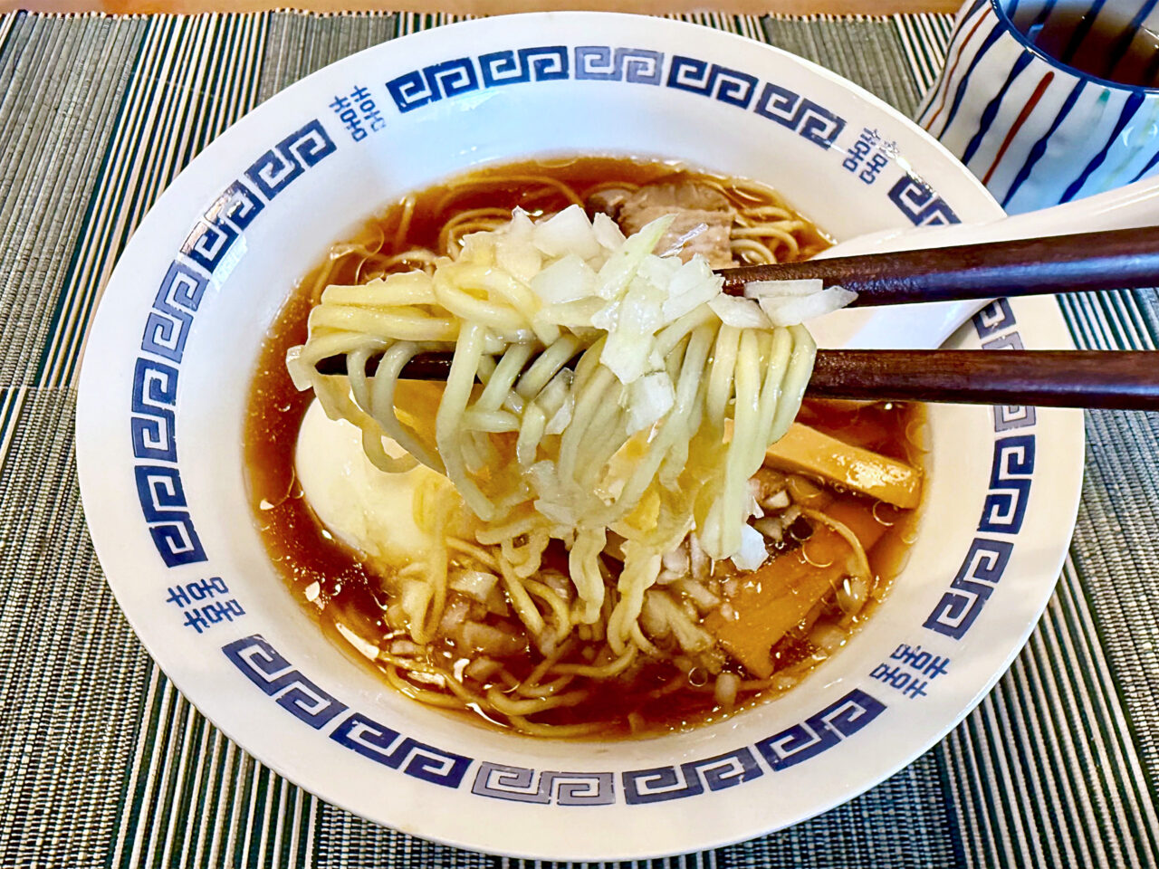 醤油味スープなので、刻み玉ねぎの甘みと辛味が良く合います。