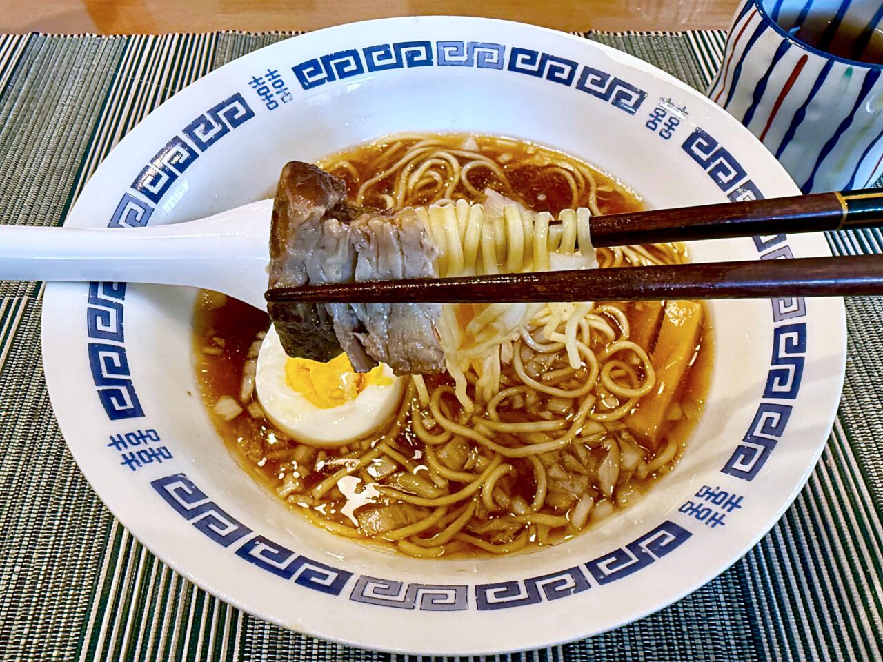 チャーシューも撮り忘れたので、写真は以前「竹岡式ラーメン」を作った時のものですが、豚バラを使ったのでほぼ一緒の見た目です。