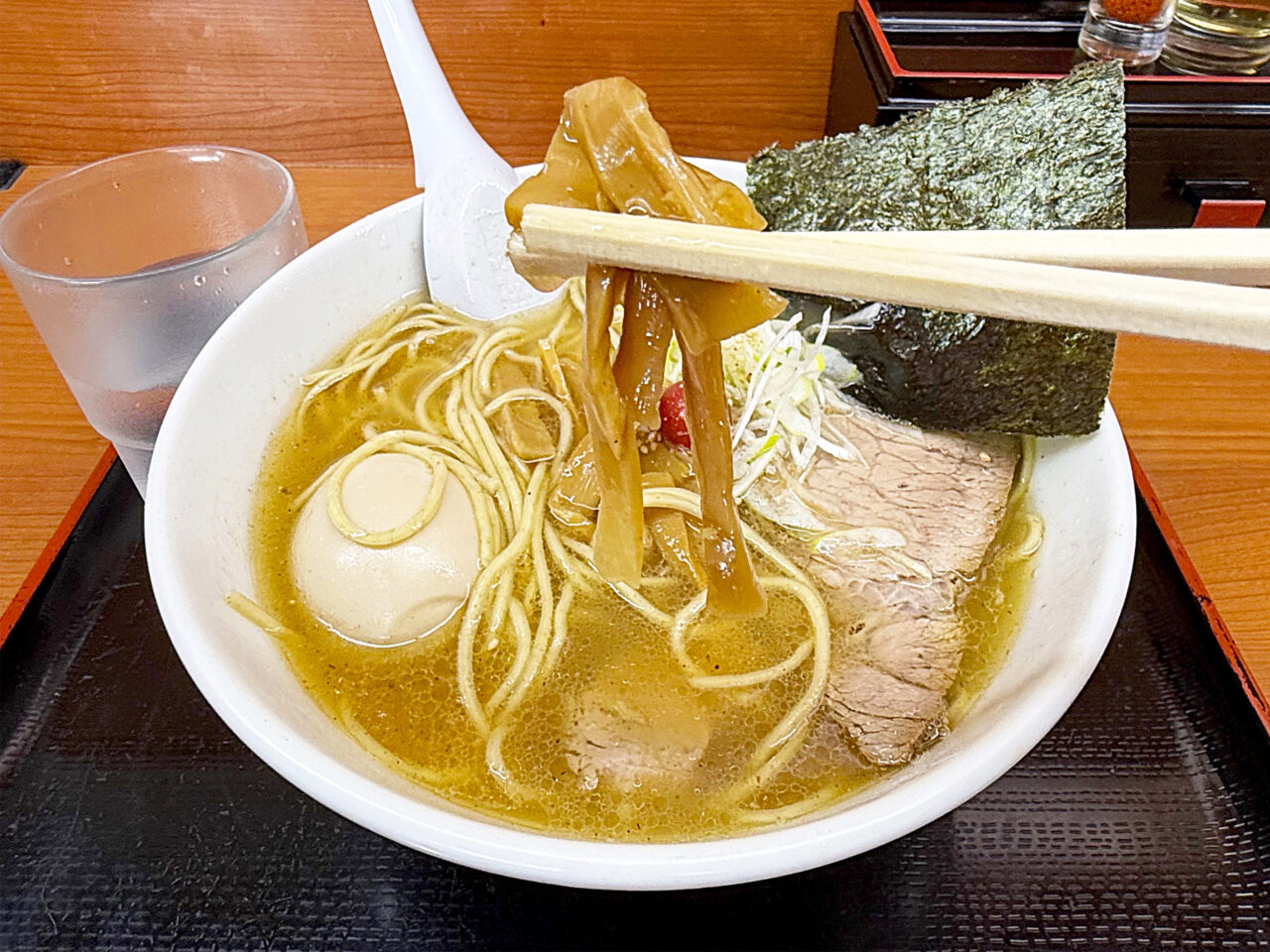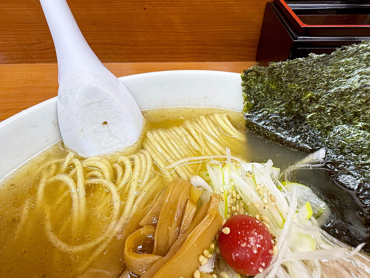 醤油味スープだとバラ海苔の濃い磯感が合いますが、「しおらぁ麺」には板海苔の方が合いそうです。