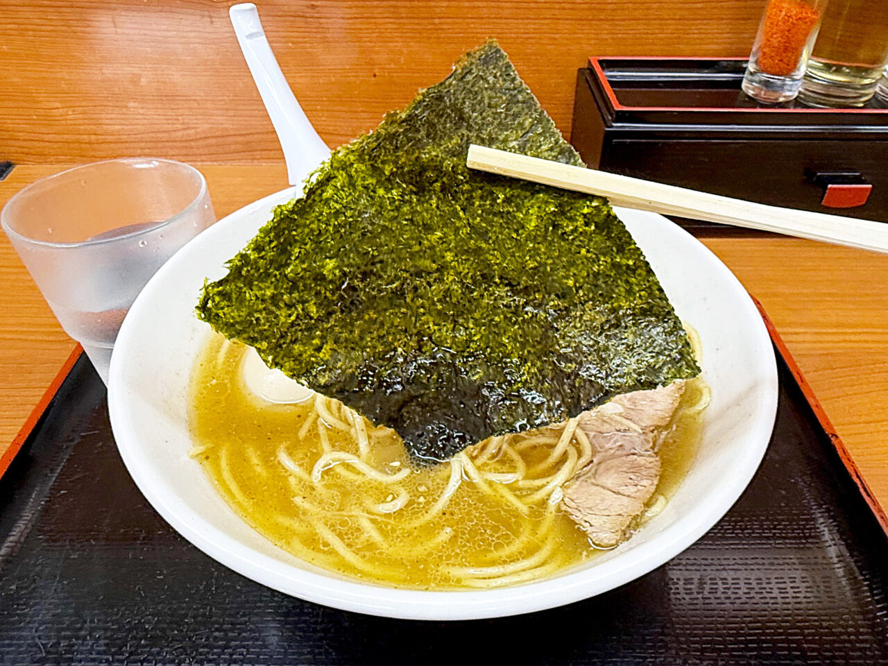 家系ラーメンの様な大きな海苔。