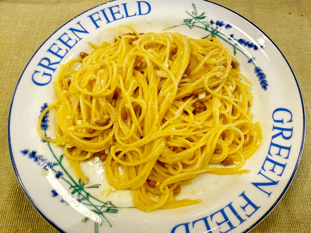 今日はYoutubeチャンネルの「リュウジのバズレシピの副菜」で紹介されていた「【シン納豆パスタ】」を作ってみました。