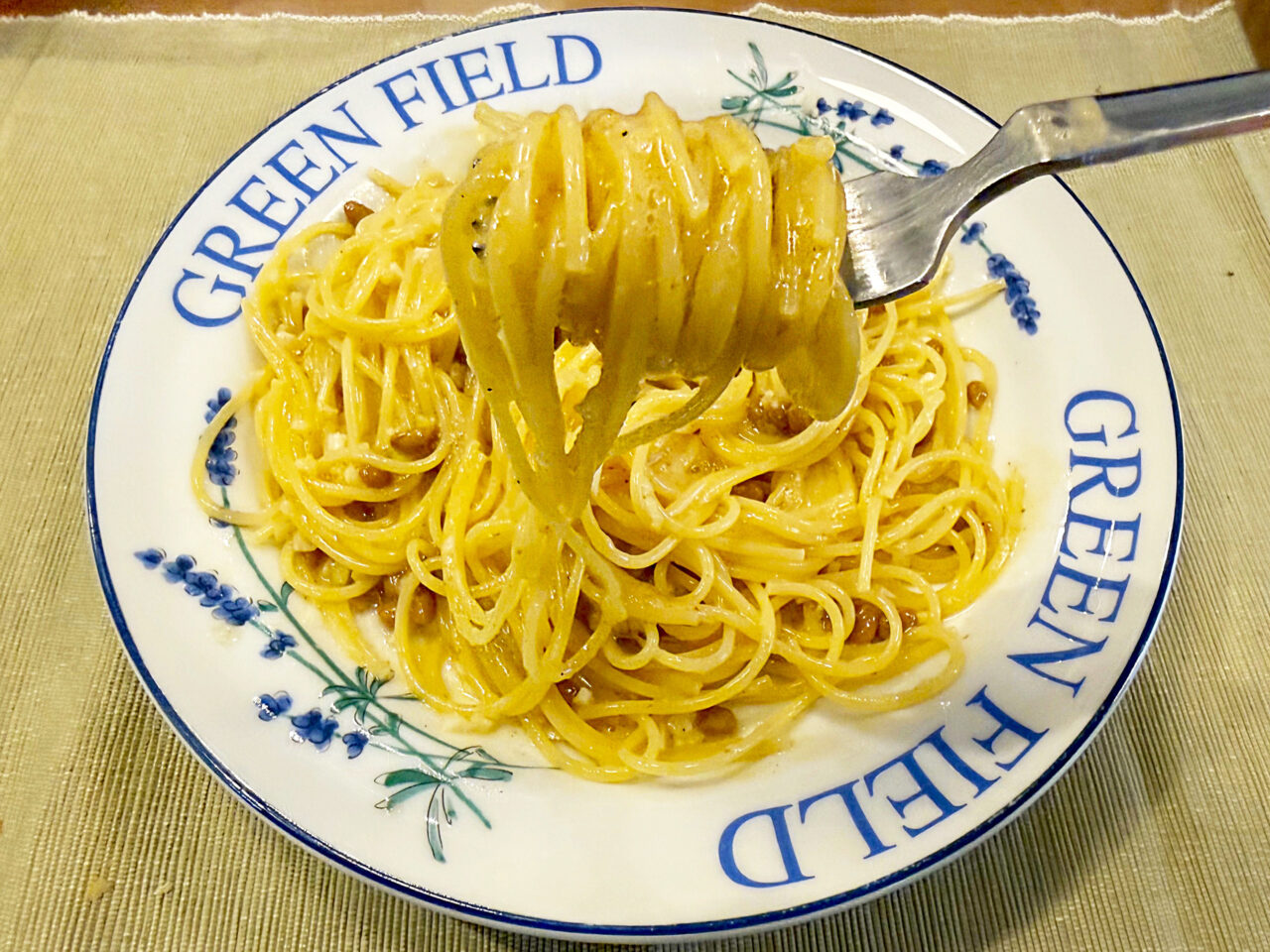「【海苔納豆クリームパスタ】」の方が作るのは簡単ですが、一手間掛けても損は無い位美味いです。