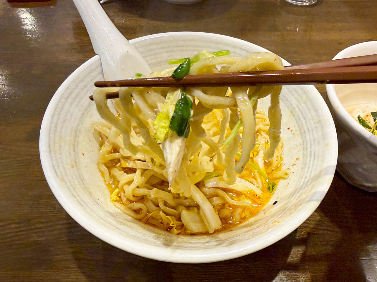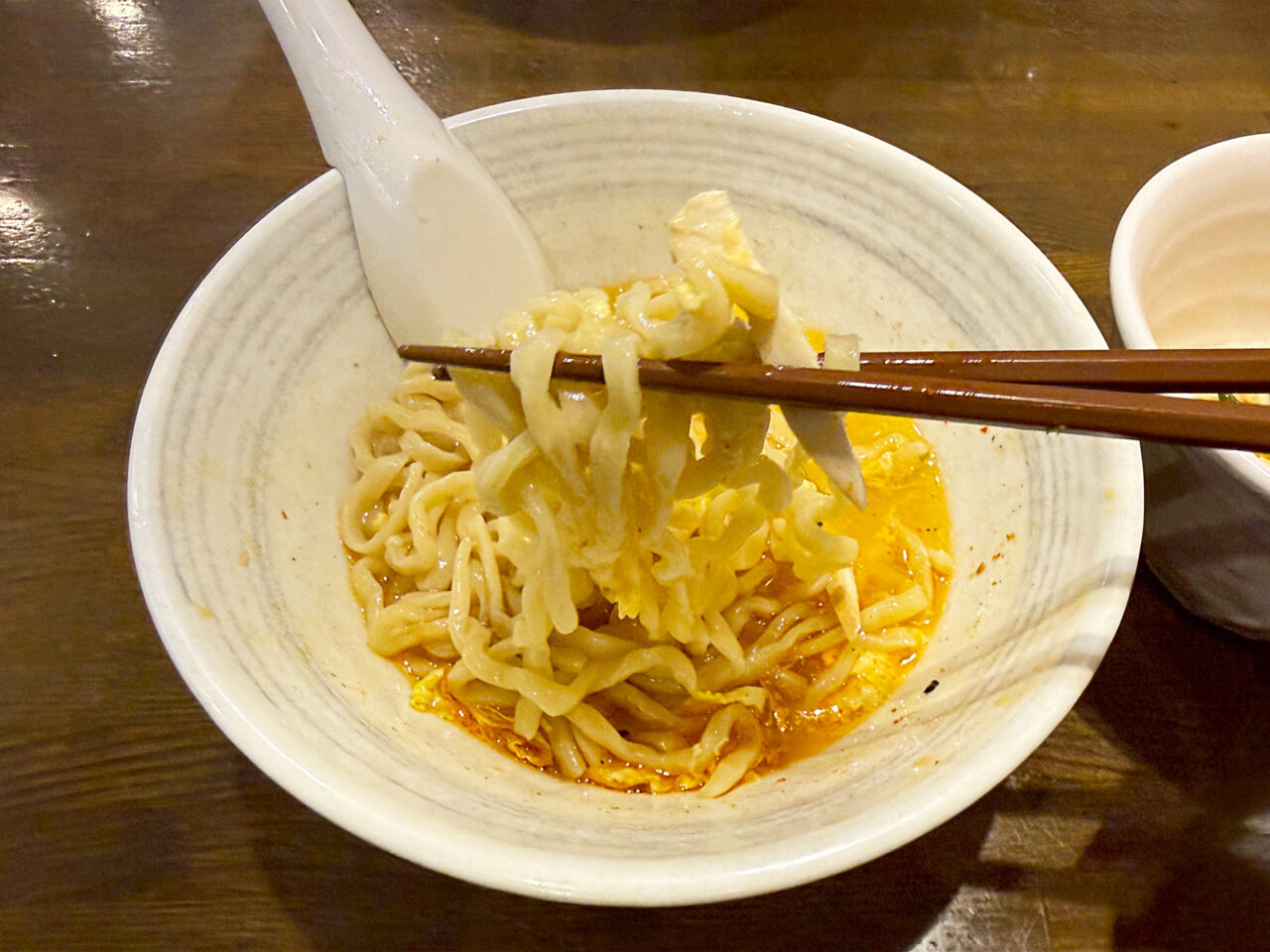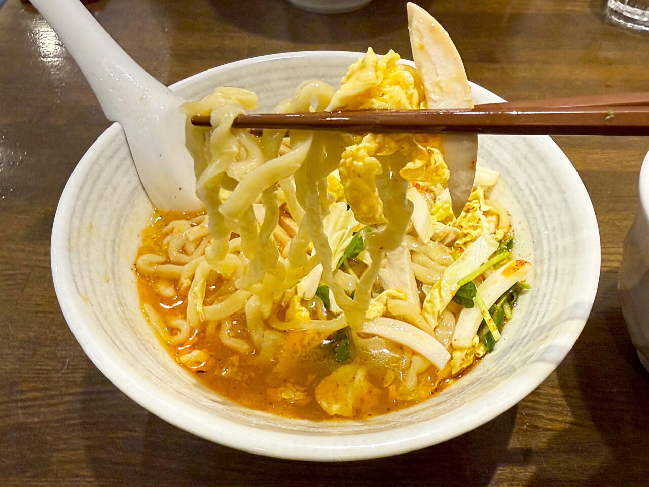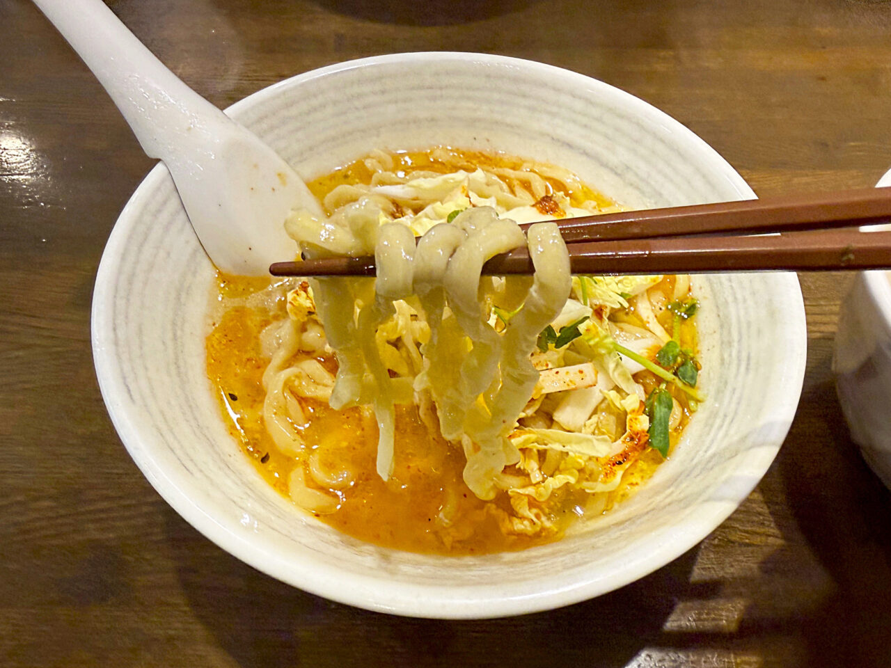 小麦の風味が美味くて、ピリ辛なスープがとても良く合います。