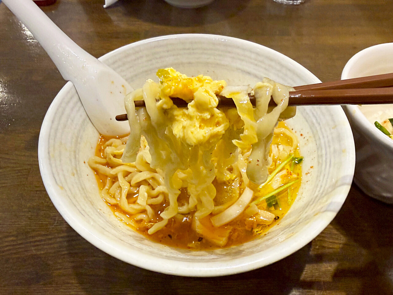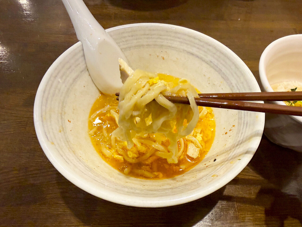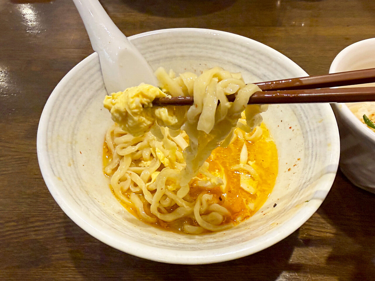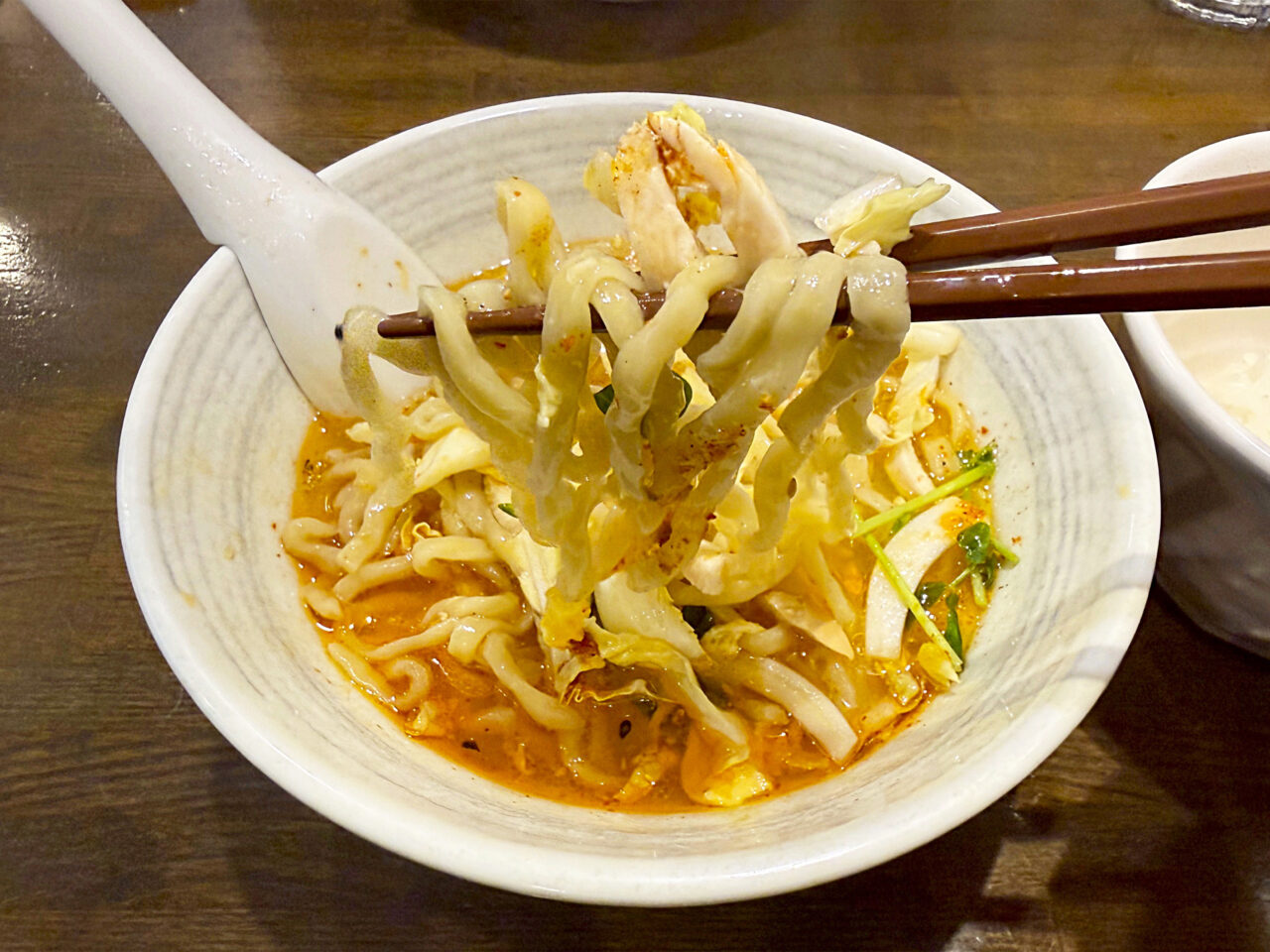 小麦の風味が美味くて、ピリ辛なスープがとても良く合います。