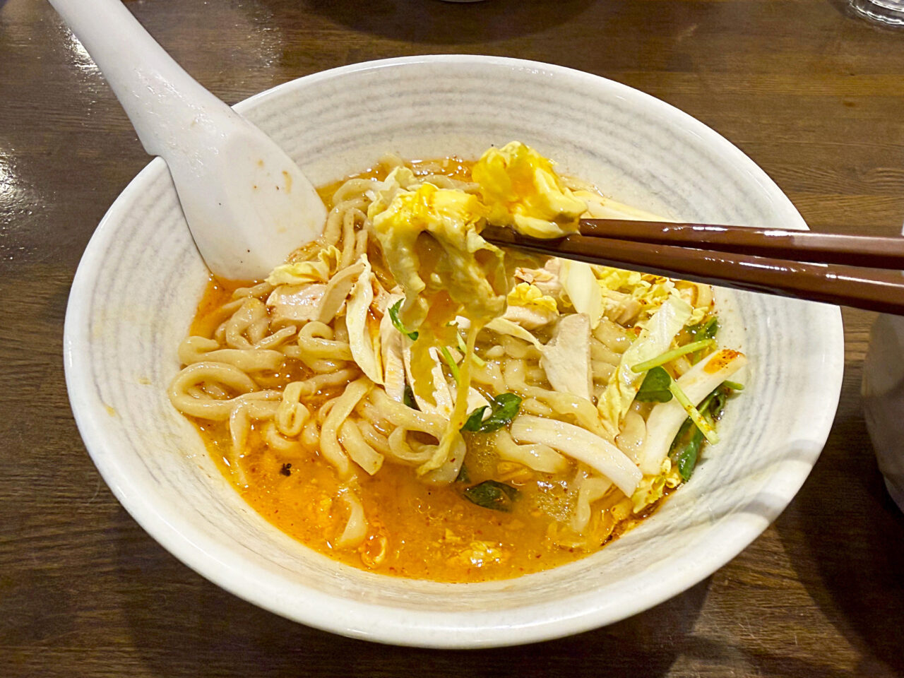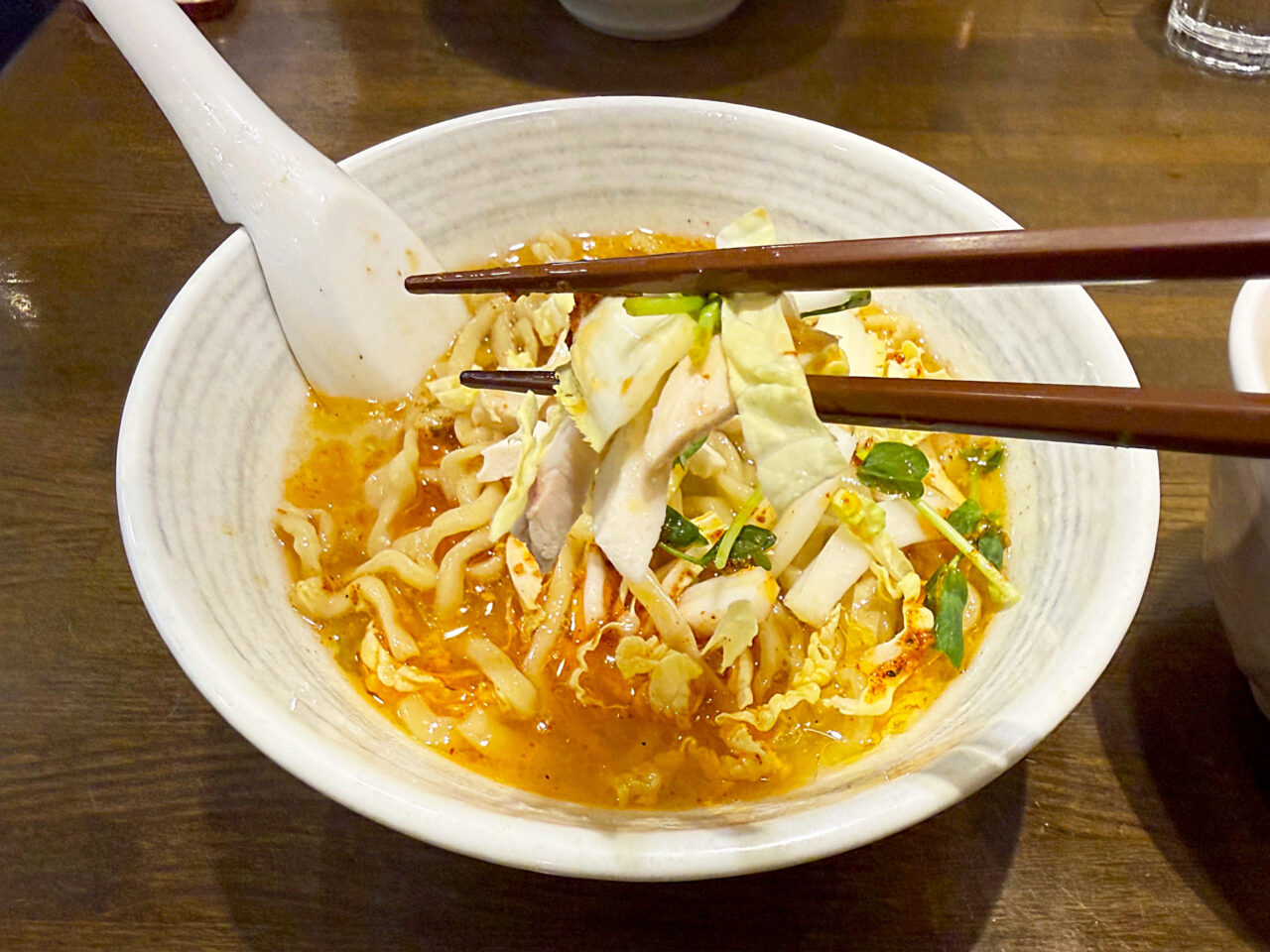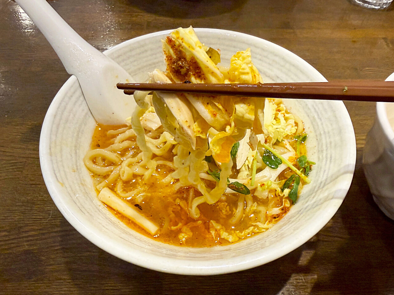 具材のセレクトもとても良くて、溶き卵と鶏胸肉に細切りの白菜というのがまた良いです。