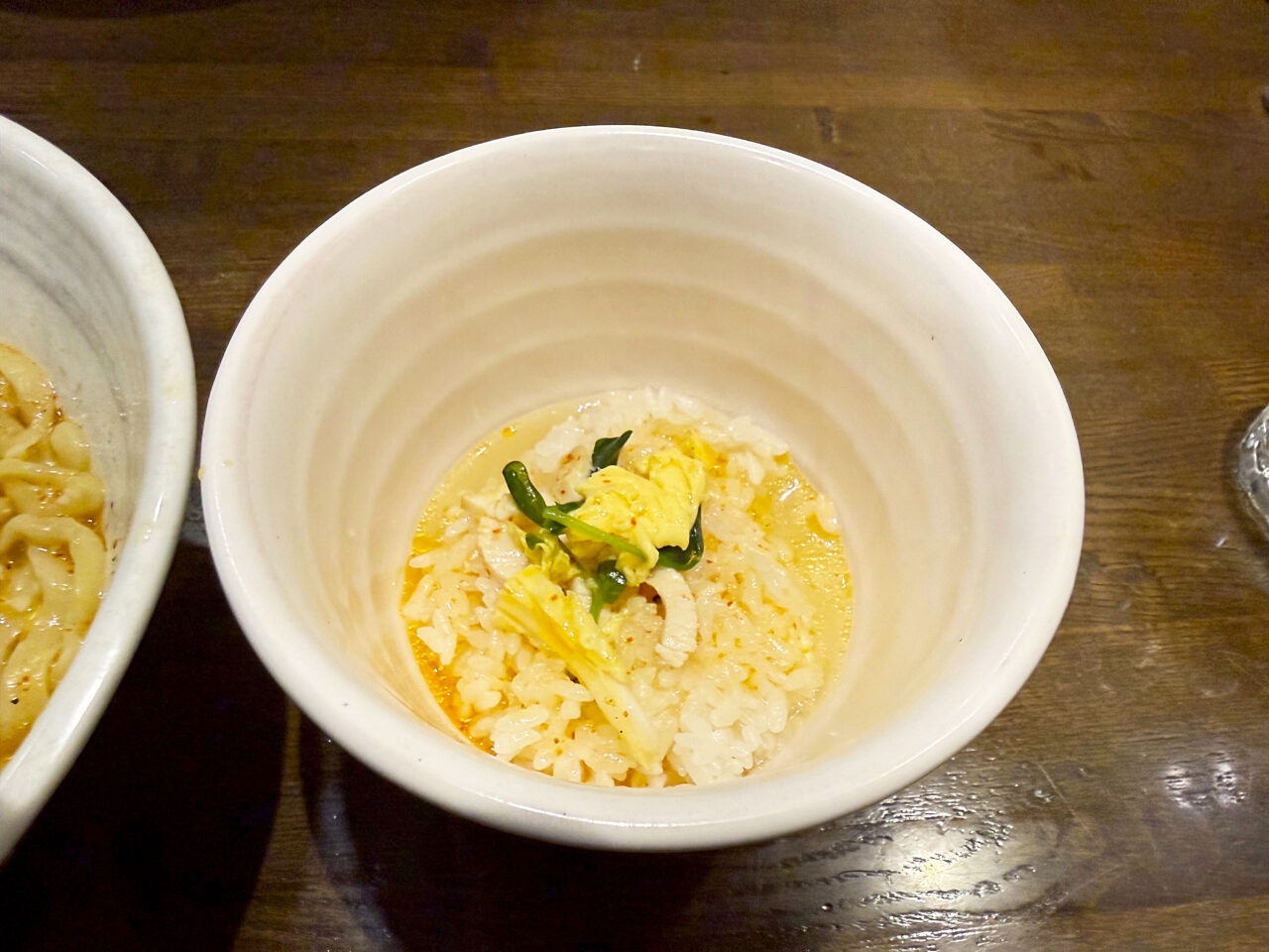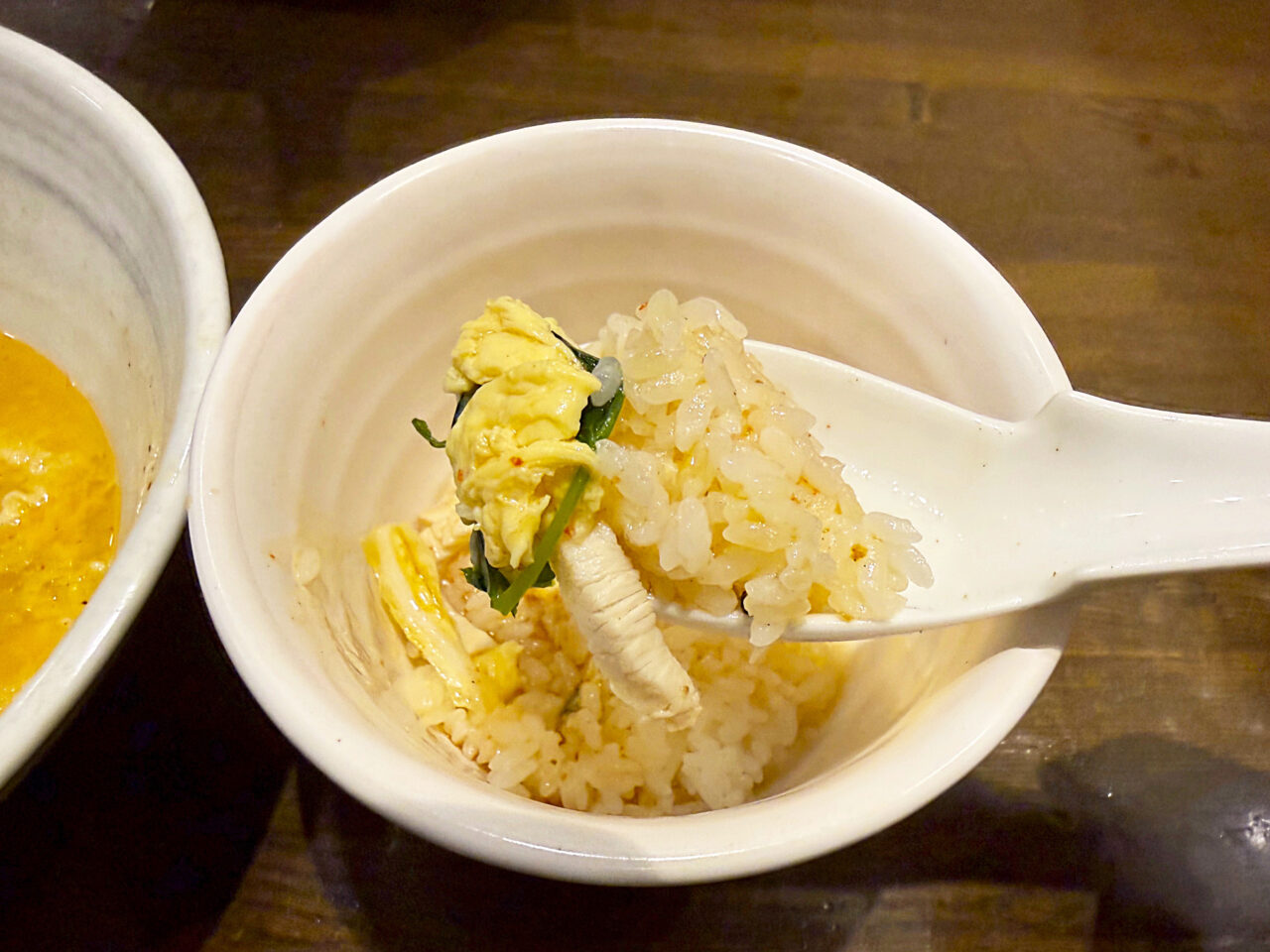 サービスランチにスープと具材を掛けて〆の雑炊風にしてもとても美味しいです。