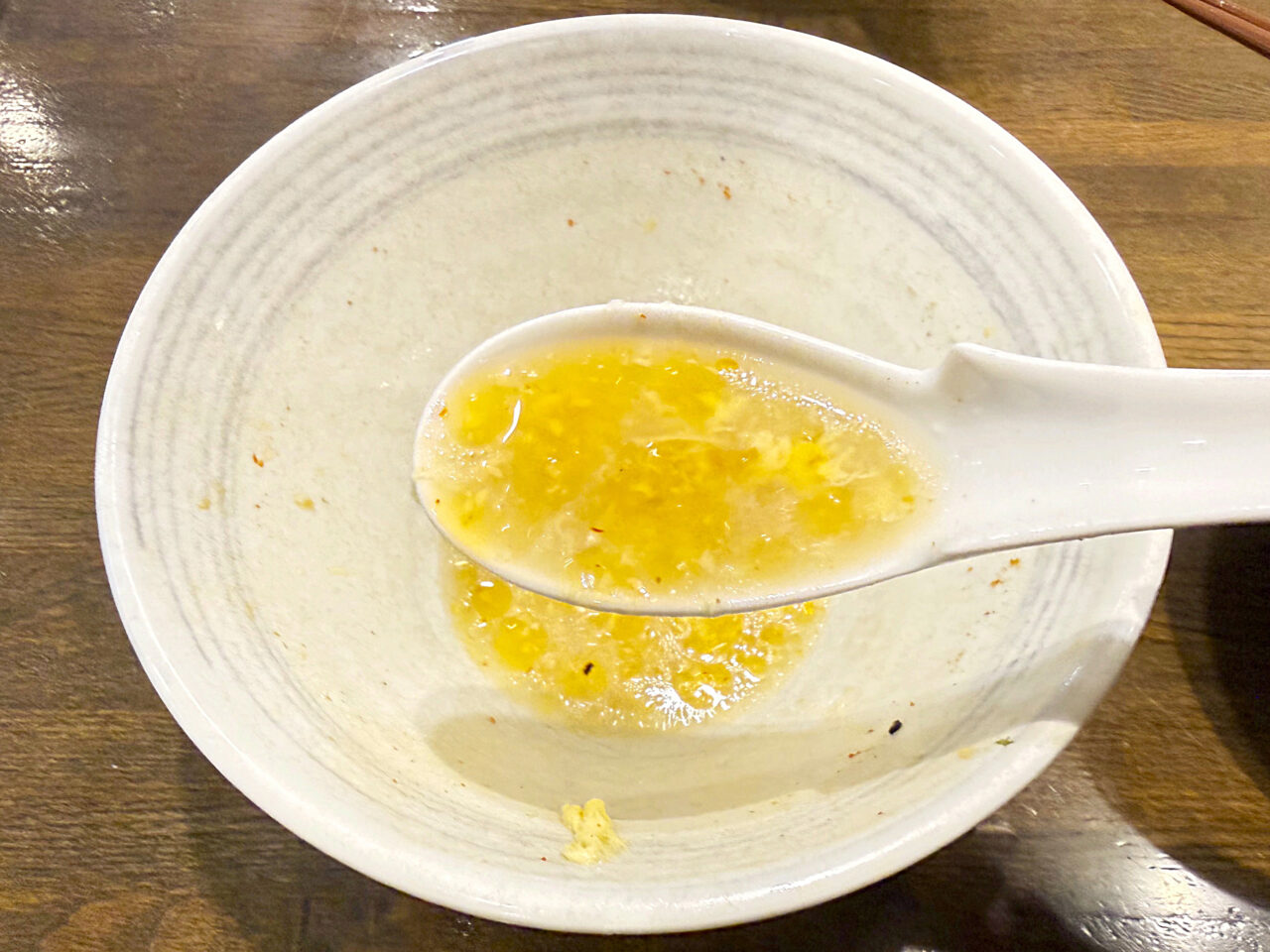 溶き卵入りのスープは自家製ラー油の香ばしさがとても良いです。