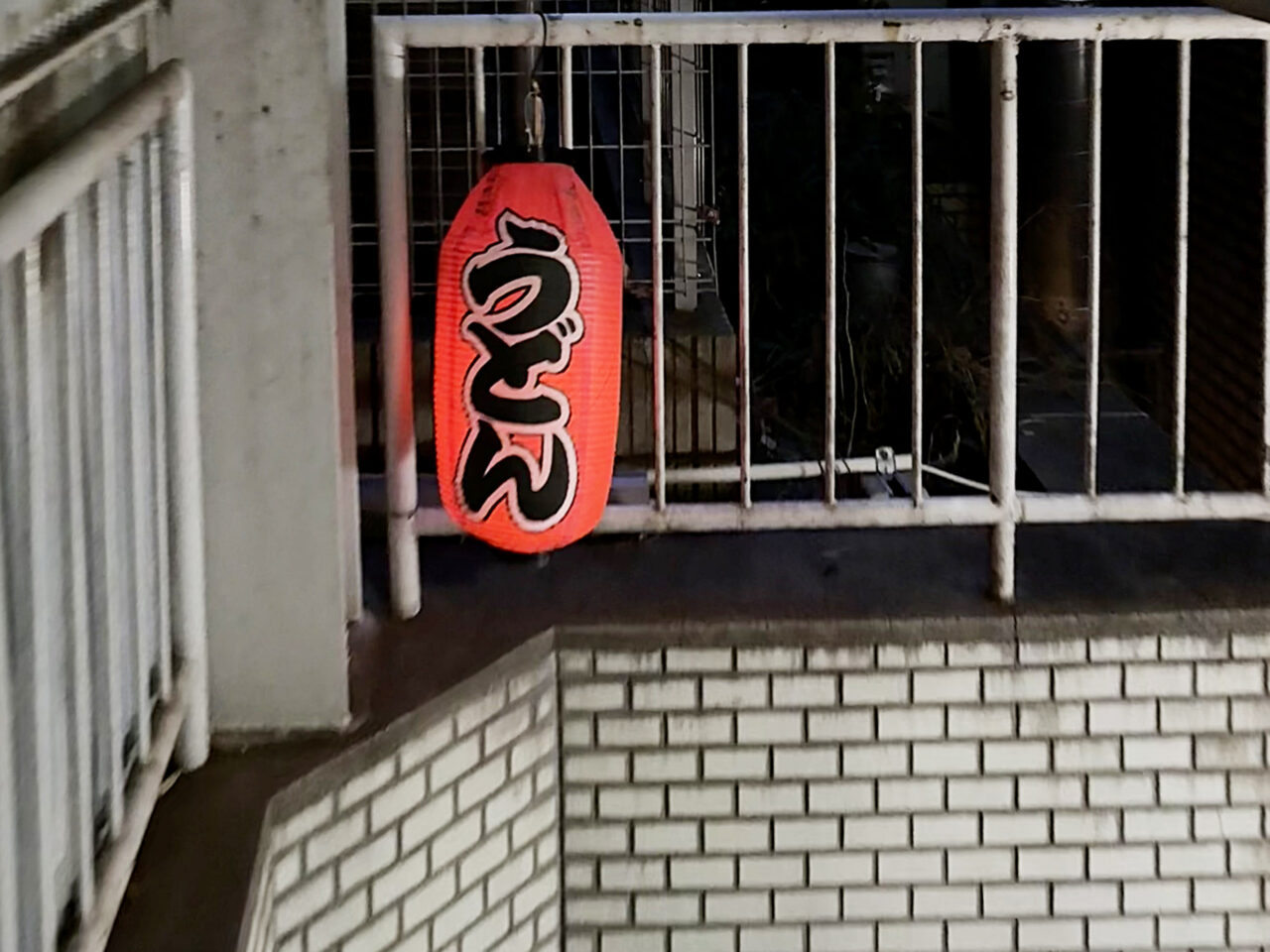 階段の提灯が点いています。